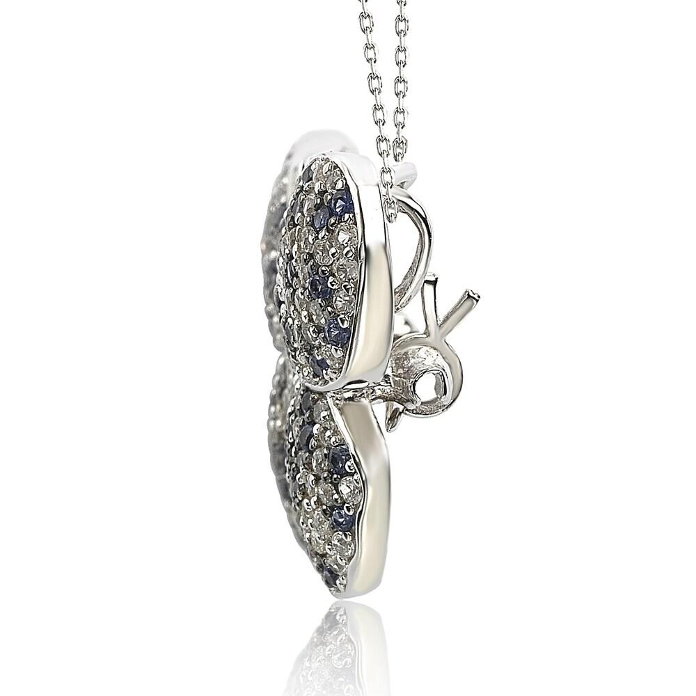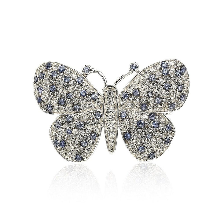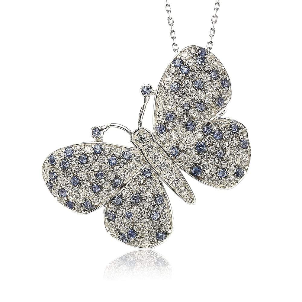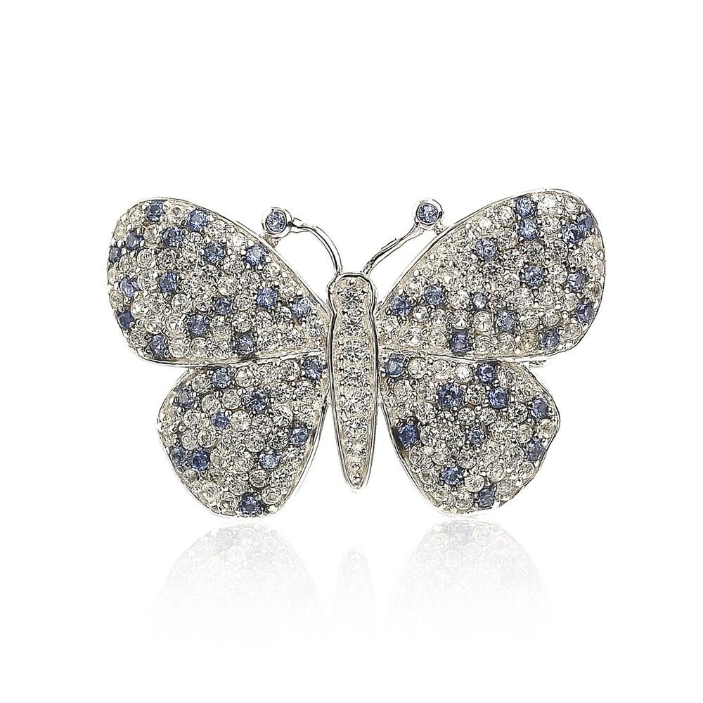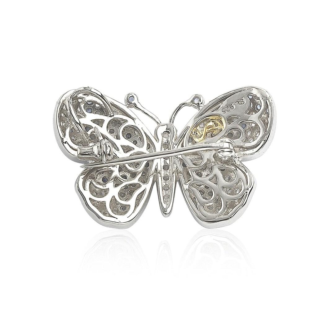 Suzy Levian Sterling Silver Sapphire & Diamond Accent Butterfly Pendant Brooch