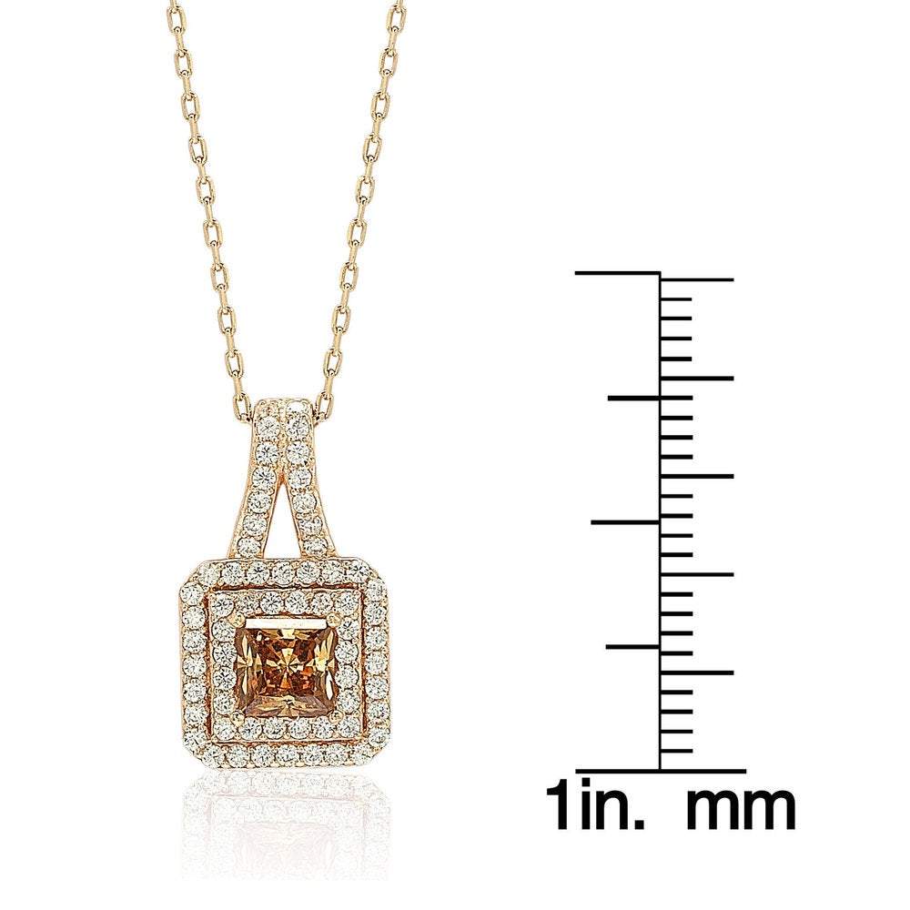 Suzy Levian Rosed Sterling Silver Asscher-Cut Cubic Zirconia Halo Pendant