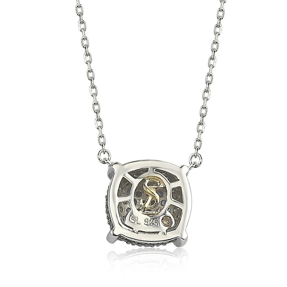 This Sterling Silver Sapphire & Diamond Accent Pave Cluster Necklace by Suzy Levian is a breathtaking statement of oceanic blues and refined elegance. A cluster of pave-set natural blue sapphires creates a striking focal point, radiating a rich and luminous hue. Designed for effortless wear, the 18-inch necklace is attached on both sides, ensuring a seamless and comfortable fit. A hidden brown diamond in the back gallery reinforces Suzy Levian’s message of empowerment and self-worth. The closed back gallery with a golden SL logo adds a final touch of luxury, making this piece an elegant addition to any jewelry collection.