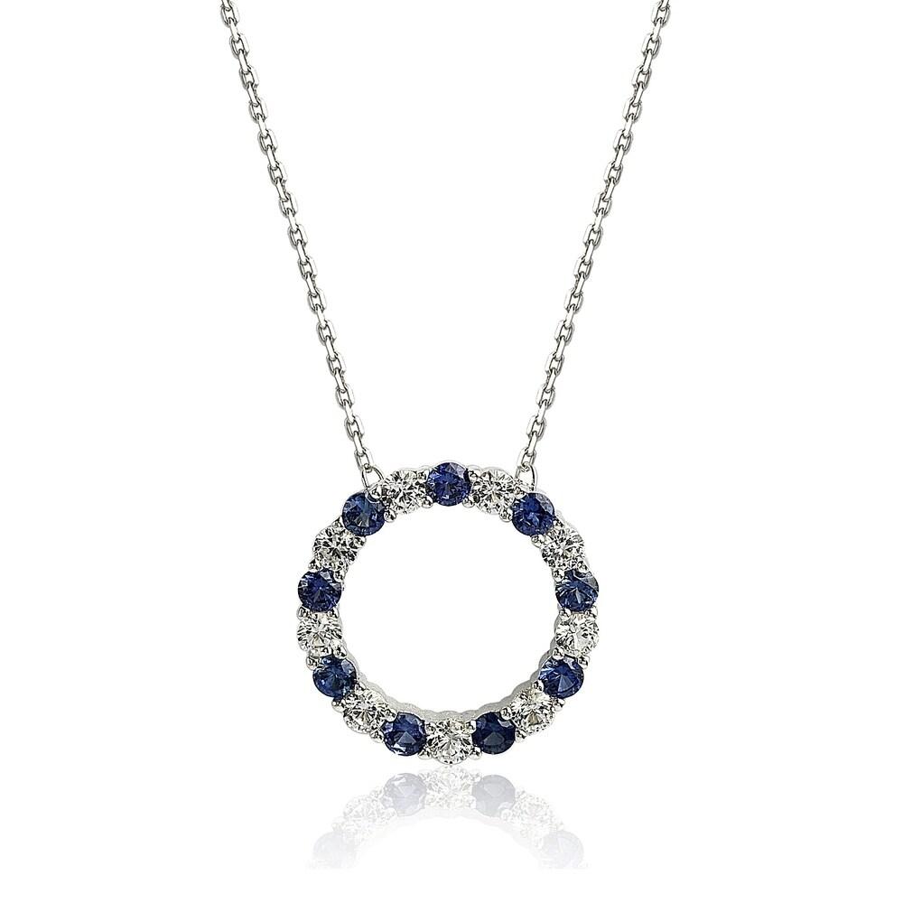 Suzy Levian Sterling Silver Sapphire & Diamond Accent Alternating Circle Eternity Necklace