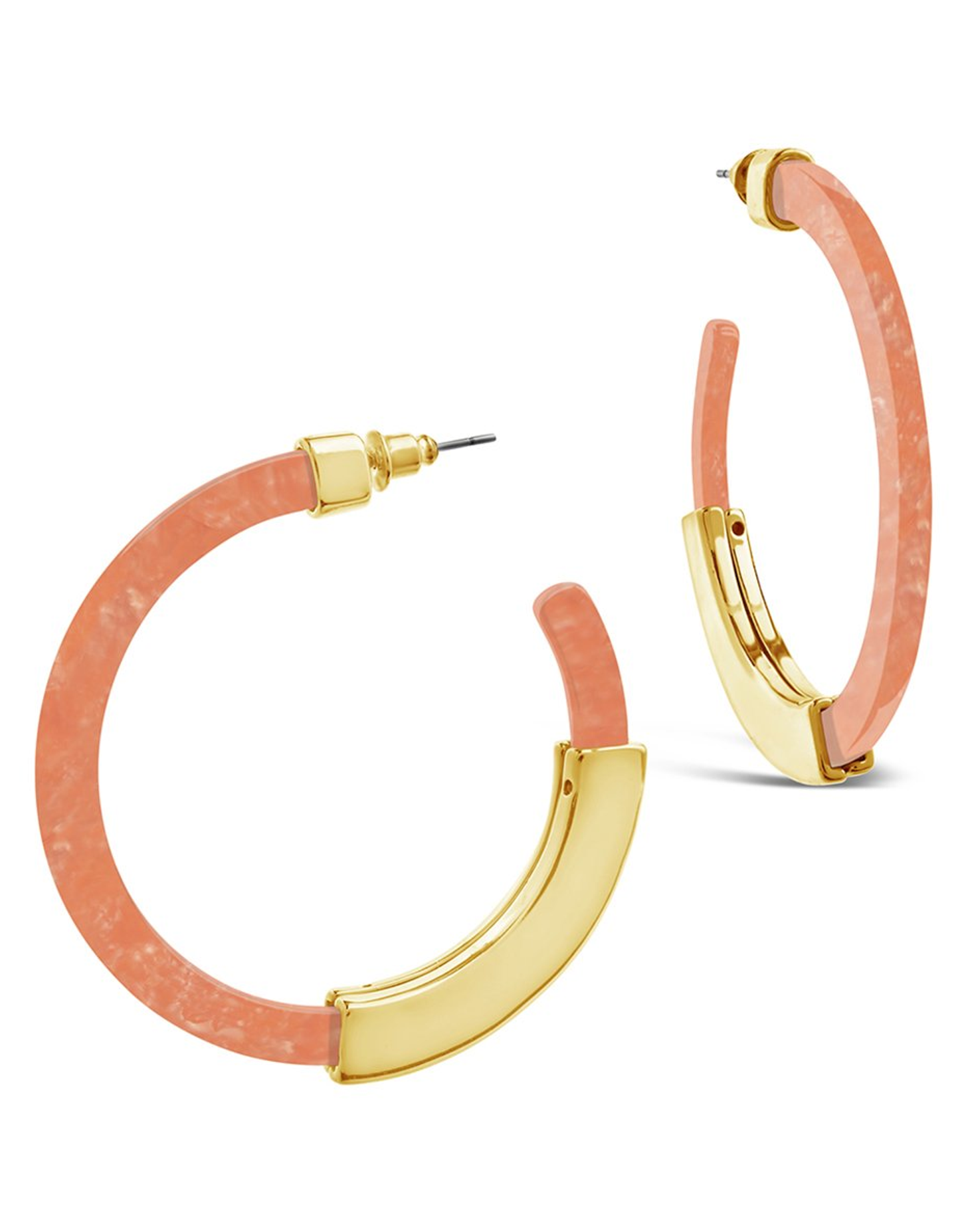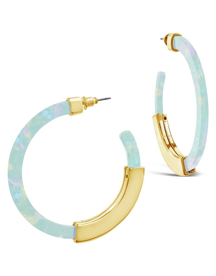 Crafted with 14K gold-plated brass and resin. Features a 2-inch (50mm) hoop diameter with a 1.25-inch bar length. Secured with a post-back closure.