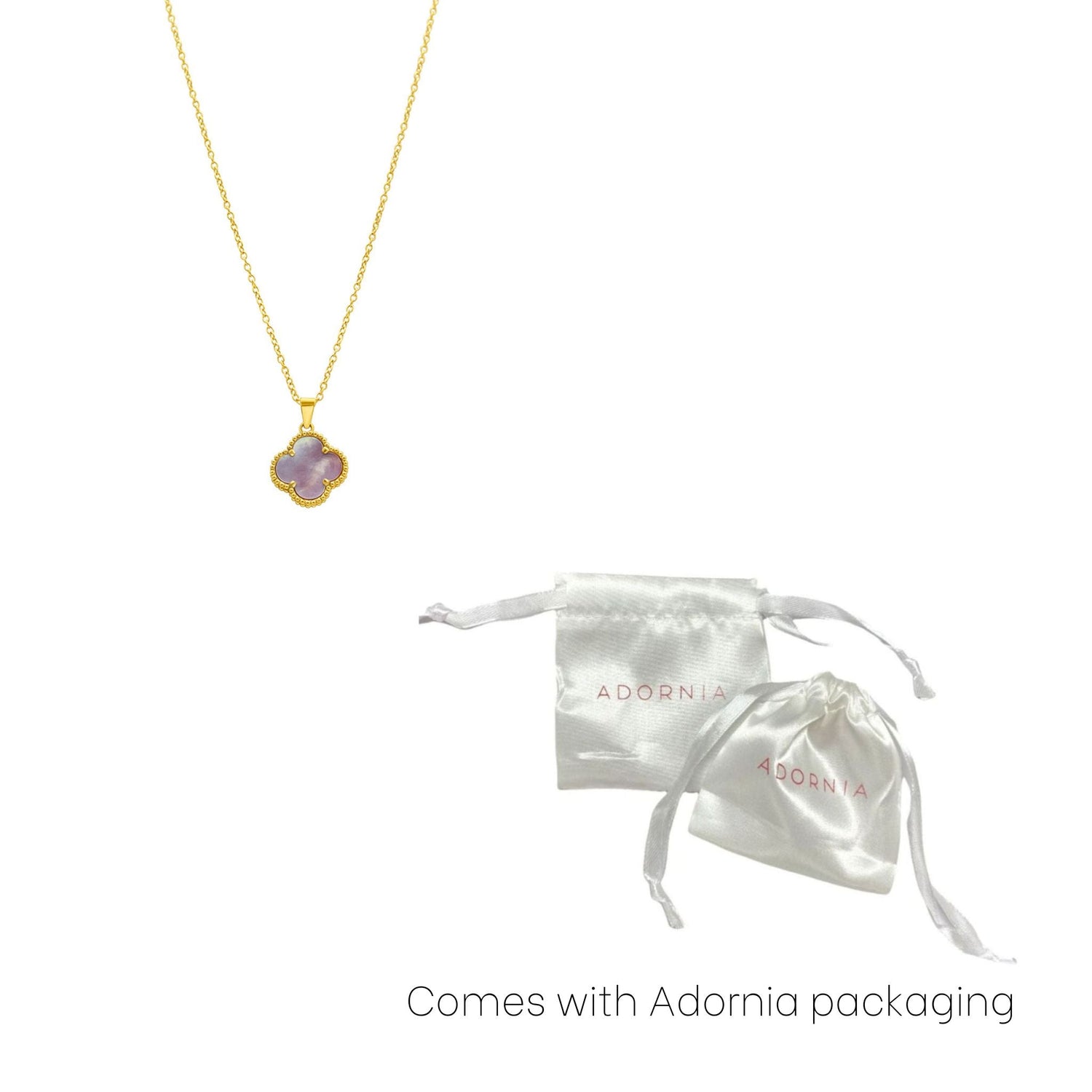 This Pink Quatrefoil Necklace by Adornia is a refined statement piece with a touch of femininity. Crafted in 14K yellow gold vermeil, this necklace features a delicate quatrefoil pendant in soft pink, offering a graceful and elegant aesthetic. Perfect for layering or wearing on its own, this pendant embodies timeless charm with a modern twist.