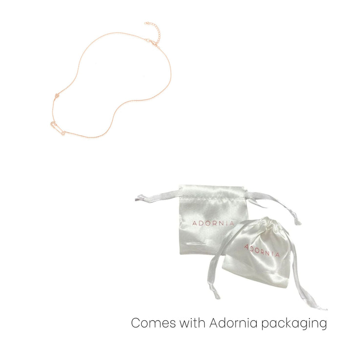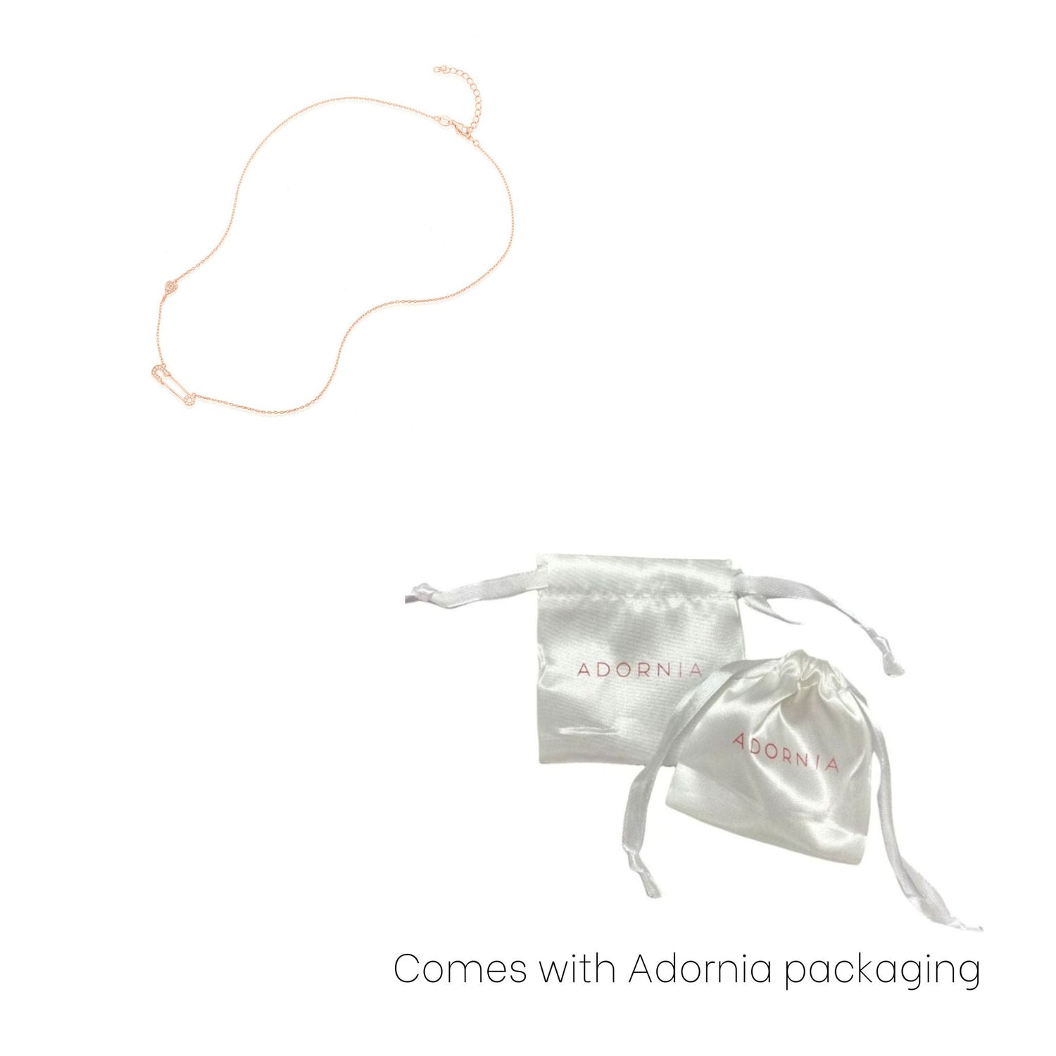 This Safety Pin Heart Necklace by Adornia reimagines edgy elegance with a romantic twist. Designed in rose gold, this necklace features a sleek safety pin motif forming a delicate heart, offering a bold yet refined statement. A contemporary symbol of strength and love, this necklace is perfect for everyday wear or gifting.