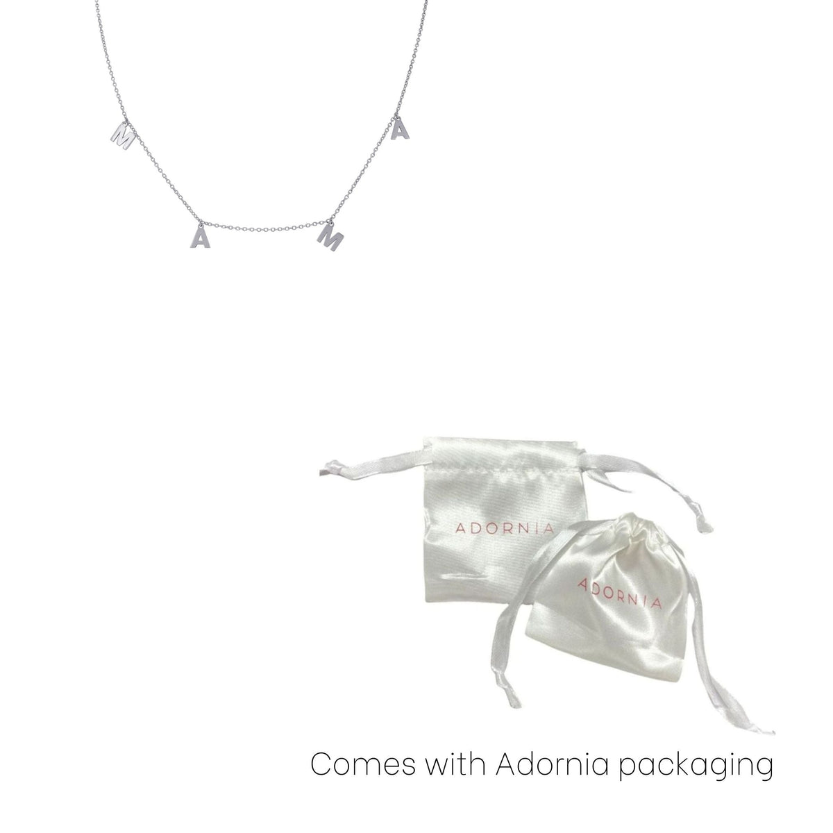 This Mama Necklace in White Rhodium Silver by Adornia is a chic and meaningful tribute to motherhood. Featuring spaced letter detailing that spells “MAMA”, this necklace embodies modern simplicity with sentimental value. The white rhodium-plated finish enhances its sleek, polished look, making it perfect for layering or wearing solo. With an adjustable 15-18 inch chain, it offers a versatile fit, secured with a spring lock closure.