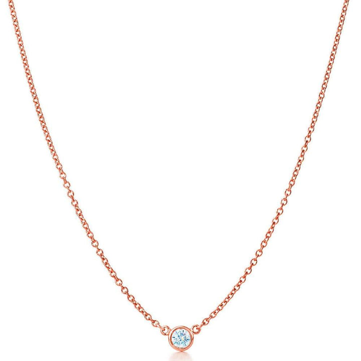 Suzy Levian 14k Gold 2/5 ct Bezel Diamond Solitaire Station Necklace