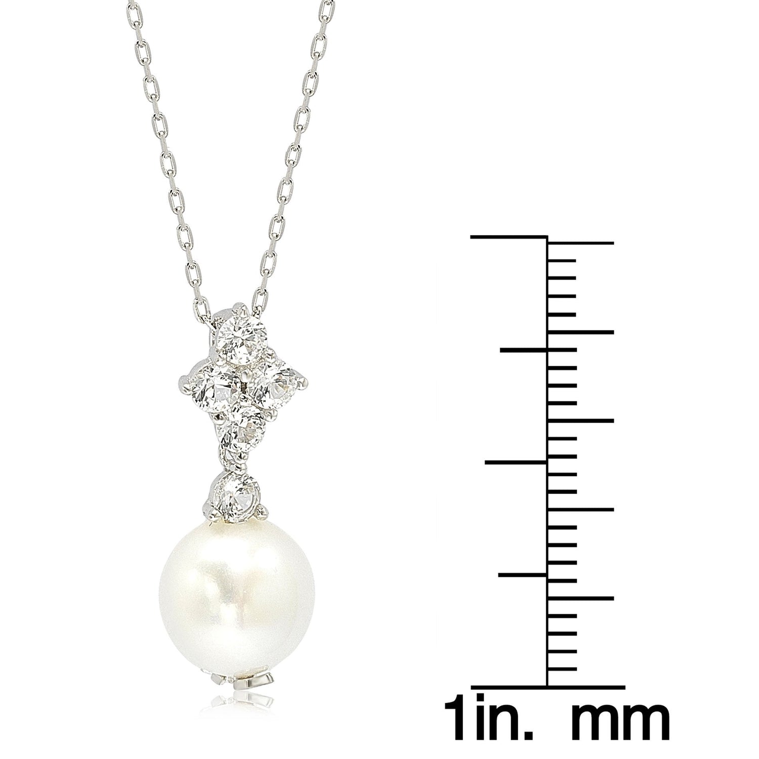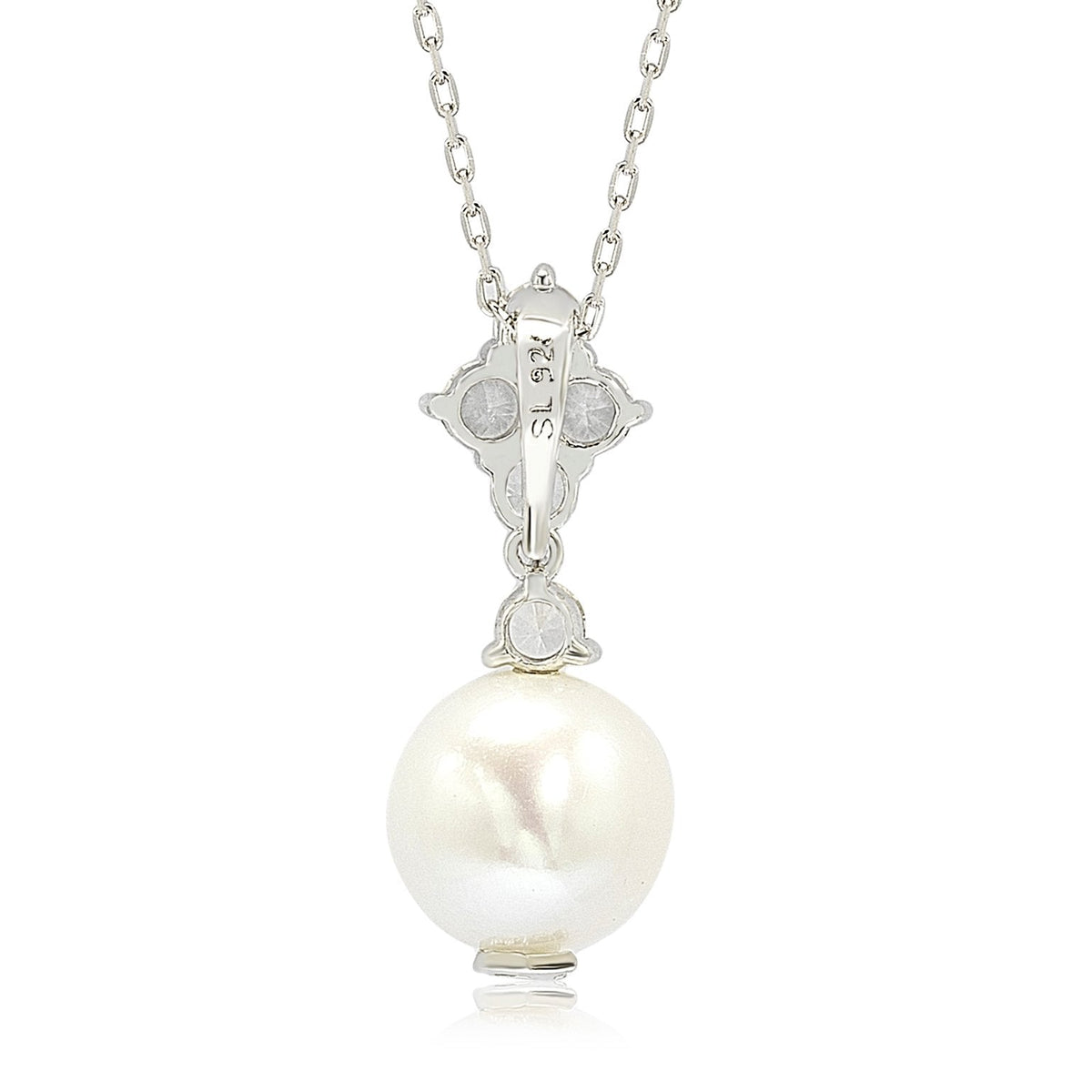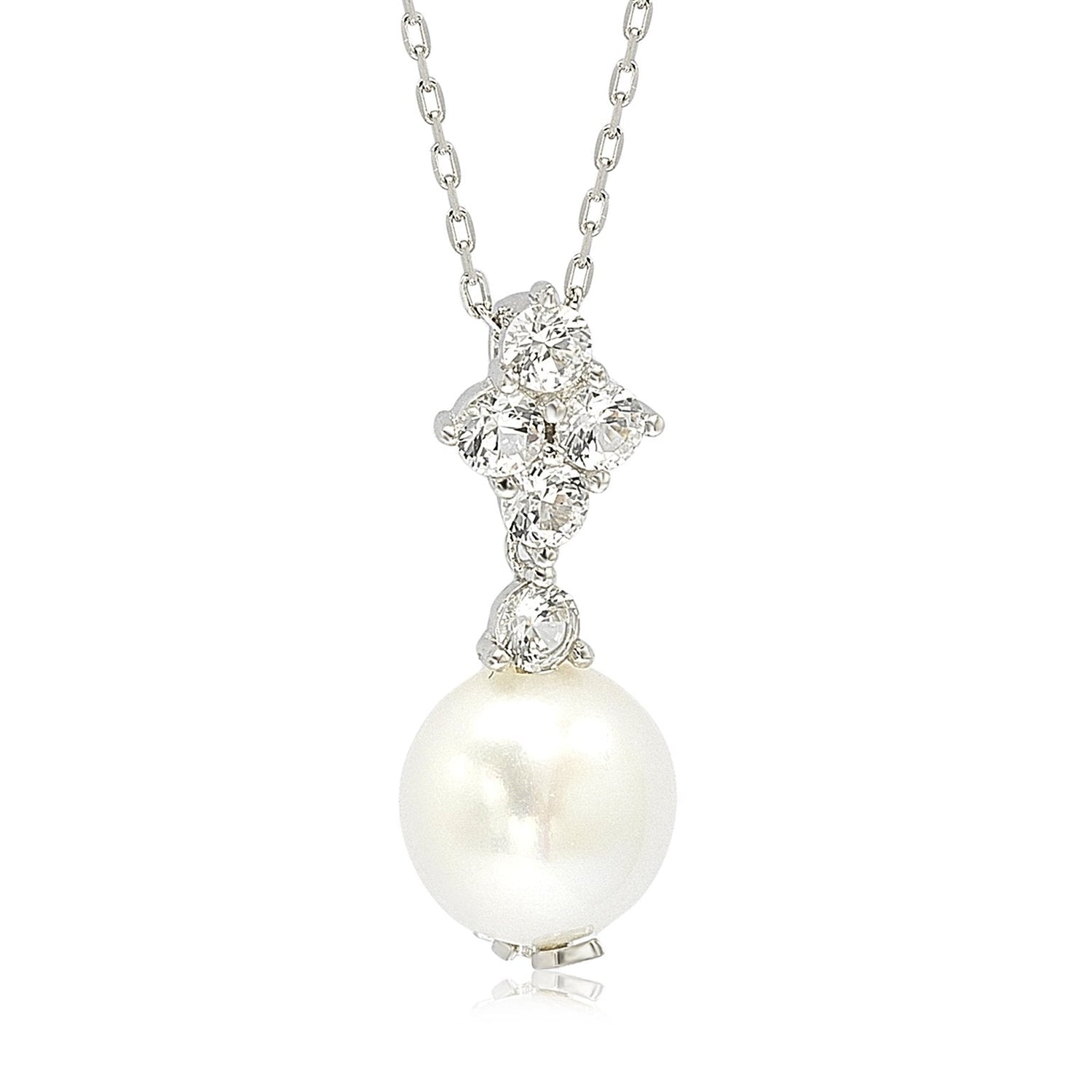 Suzy Levian Sterling Silver Pearl & White Sapphire Cluster Pendant