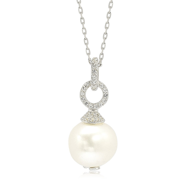 Suzy Levian Sterling Silver Pearl & White Sapphire Dangle Pendant