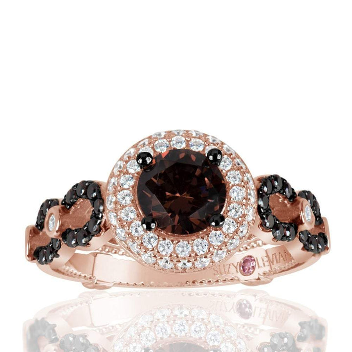 Suzy Levian Bridal Sterling Silver Brown and White Cubic Zirconia Engagement Ring