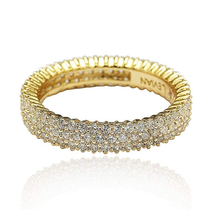 Suzy Levian Golden Sterling Silver Micro-Pave White Cubic Zirconia Eternity Band