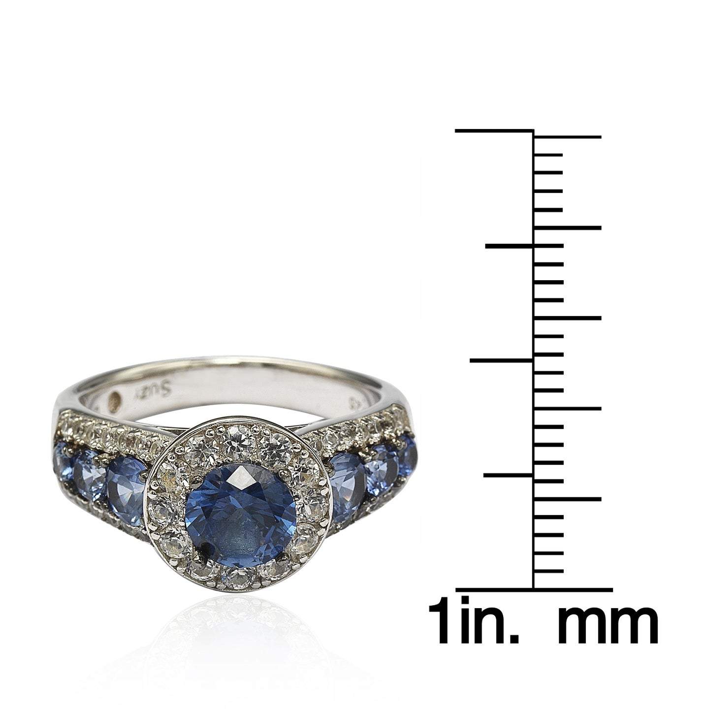 Suzy Levian Sterling Silver 3.61ct TGW Sapphire and Diamond Bridal Engagement Ring