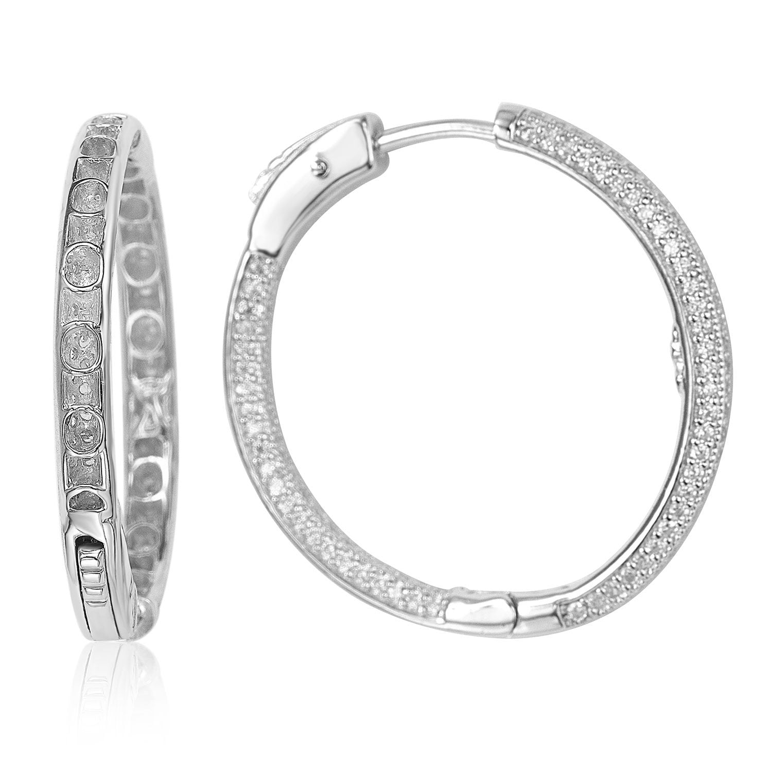 Suzy Levian Sterling Silver & White Cubic Zirconia Pave Hoop Earrings