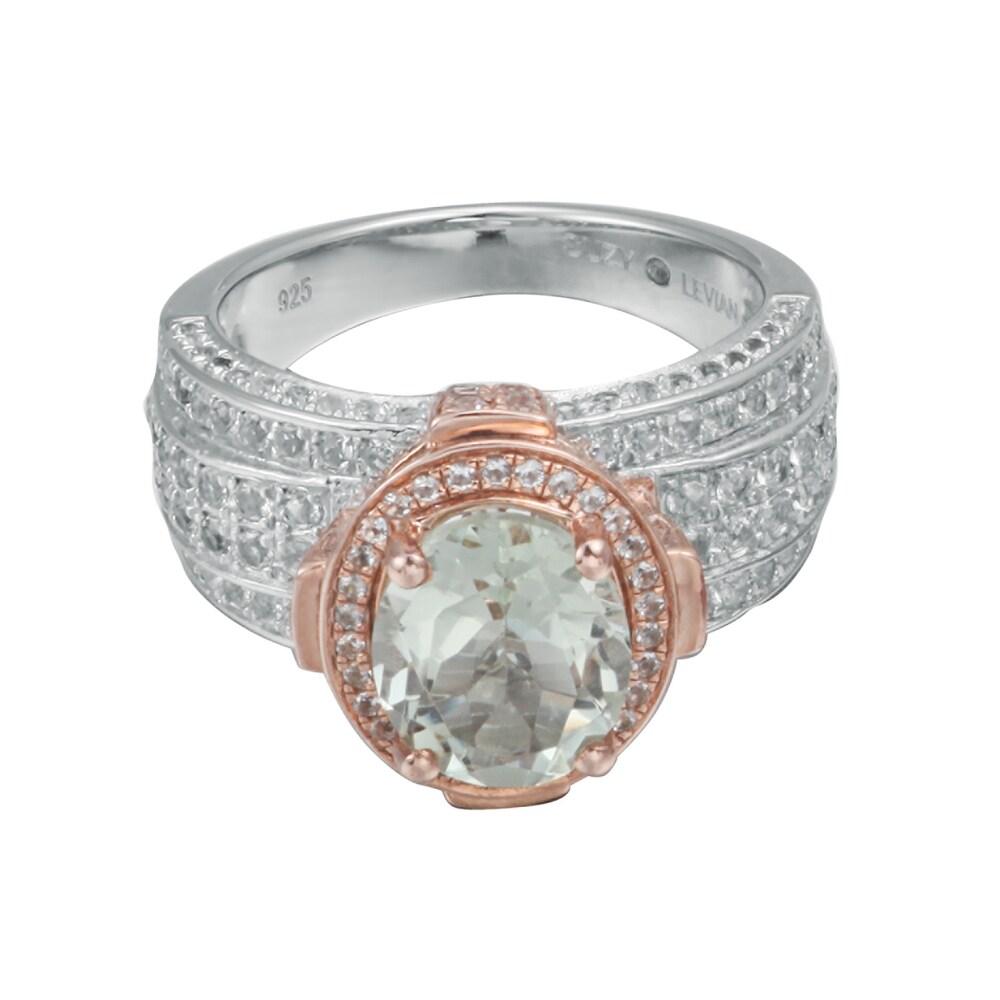 Suzy Levian Two-Tone Sterling Silver 4.73 cttw Green Amethyst Ring