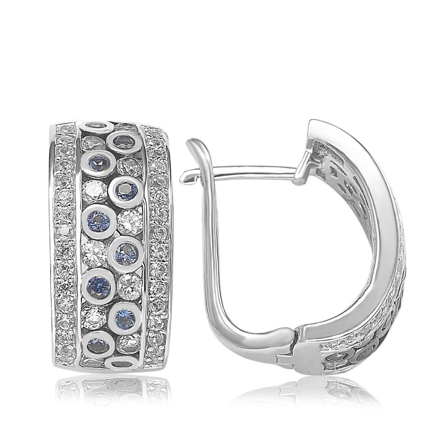 Suzy Levian Sapphire and Diamond in Sterling Silver Earring