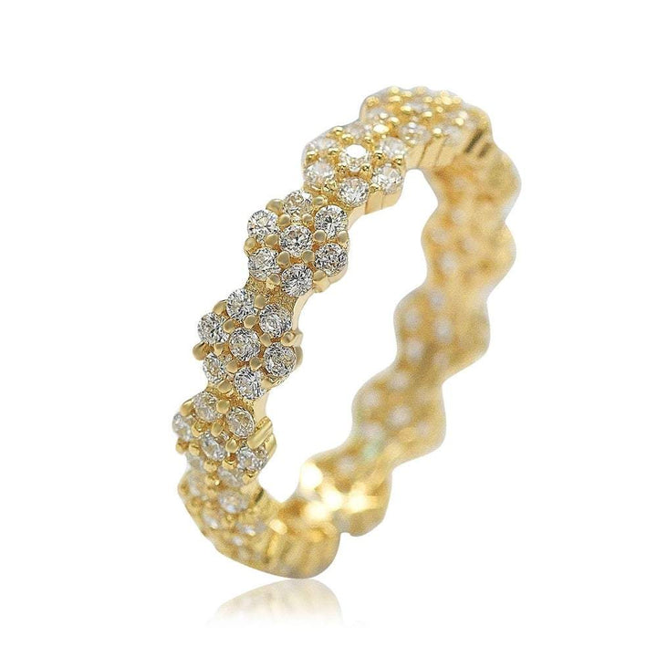 Suzy Levian Golden Sterling Silver Cubic Zirconia Floral Eternity Band