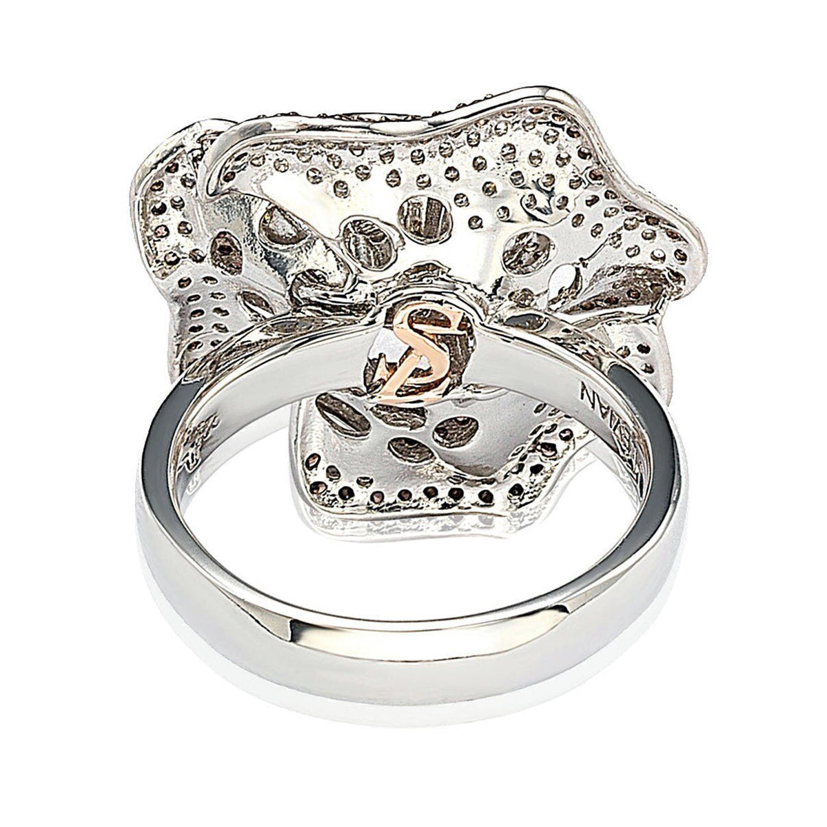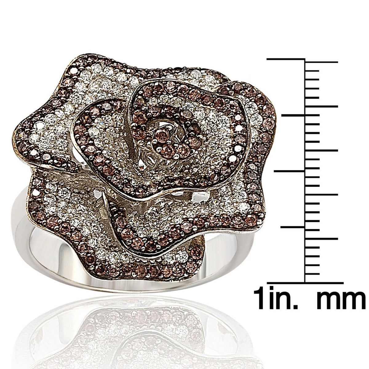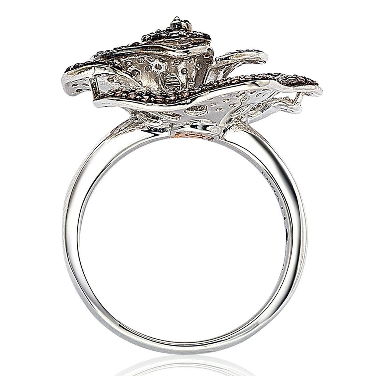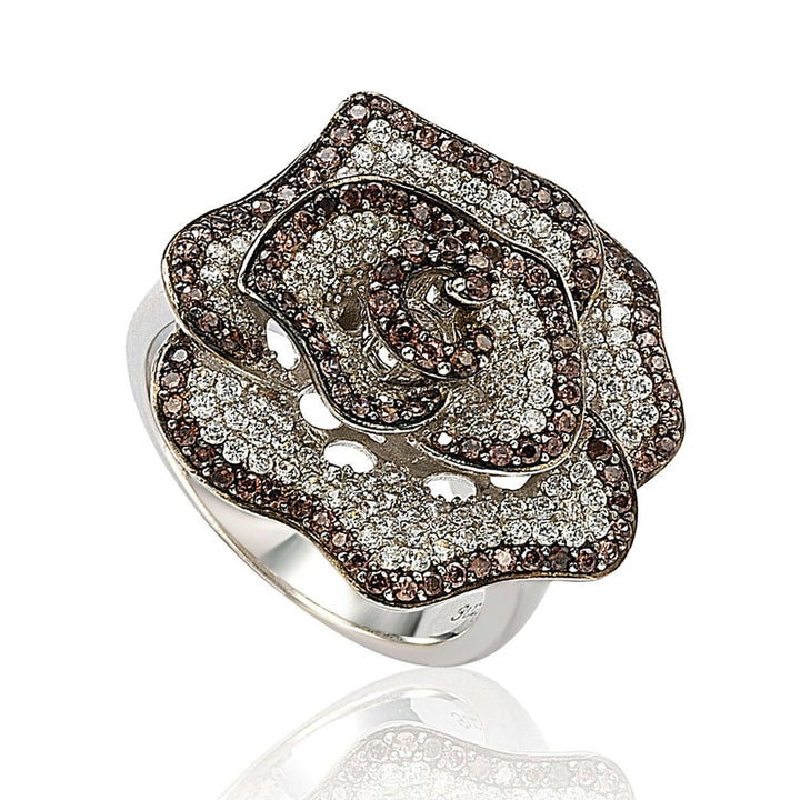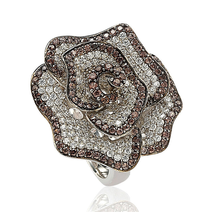 Suzy Levian Sterling Silver Brown and White Cubic Zirconia Pave Flower Ring