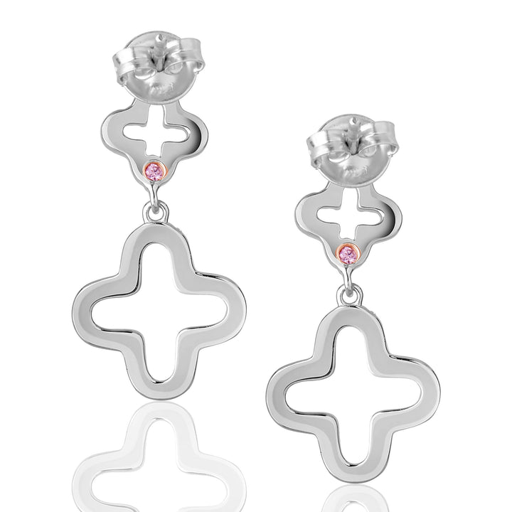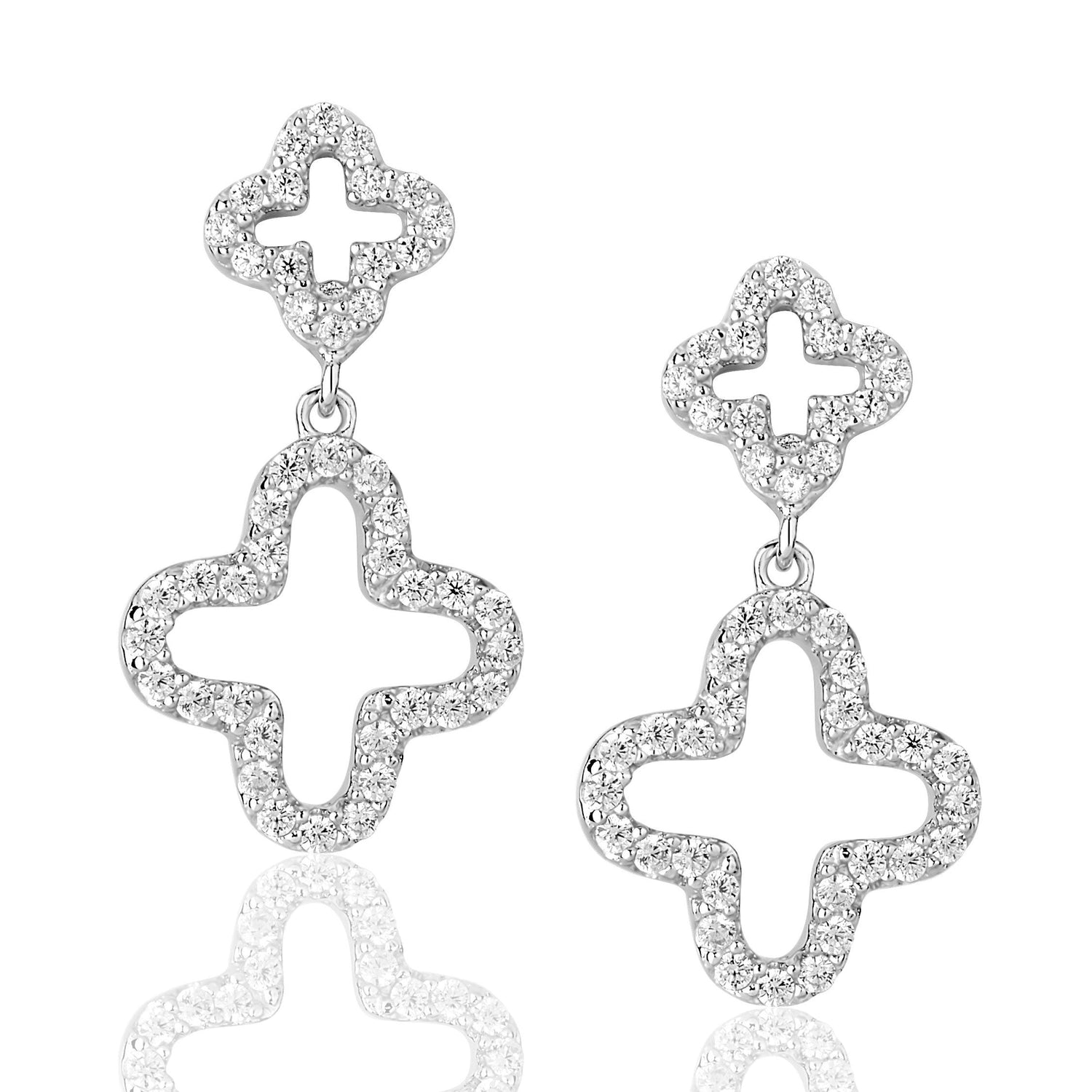 Suzy Levian Cubic Zirconia Sterling Silver Double Clover Dangle Earrings