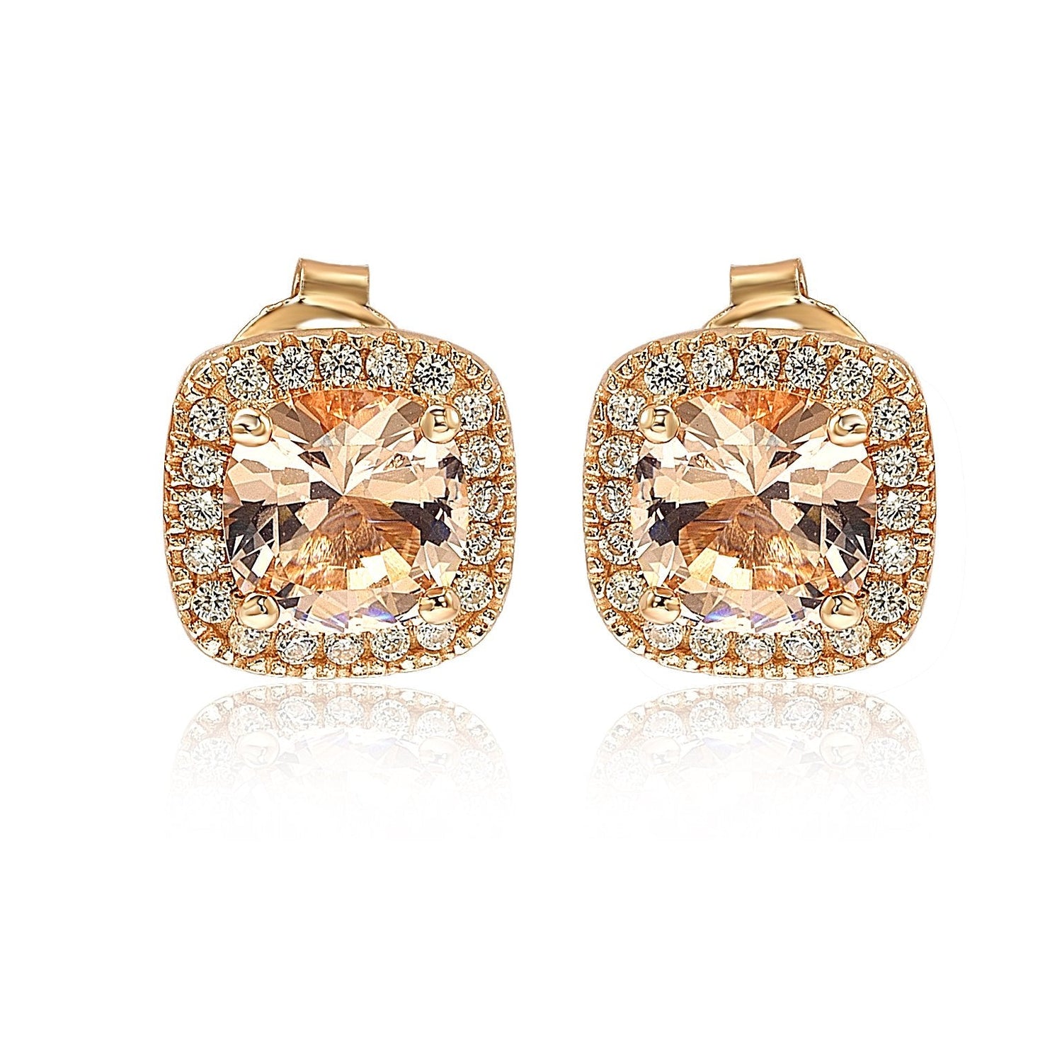 Suzy Levian Rose Sterling Silver Cushion Cut Morganite Cubic Zirconia Halo Studs