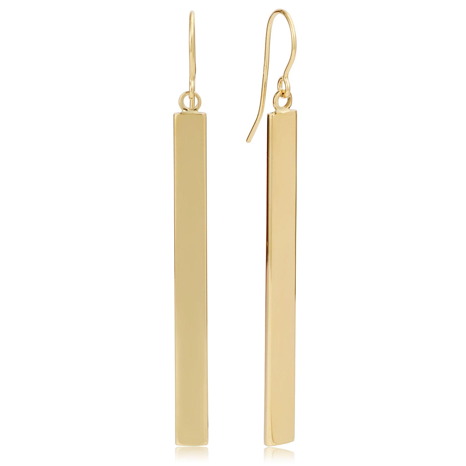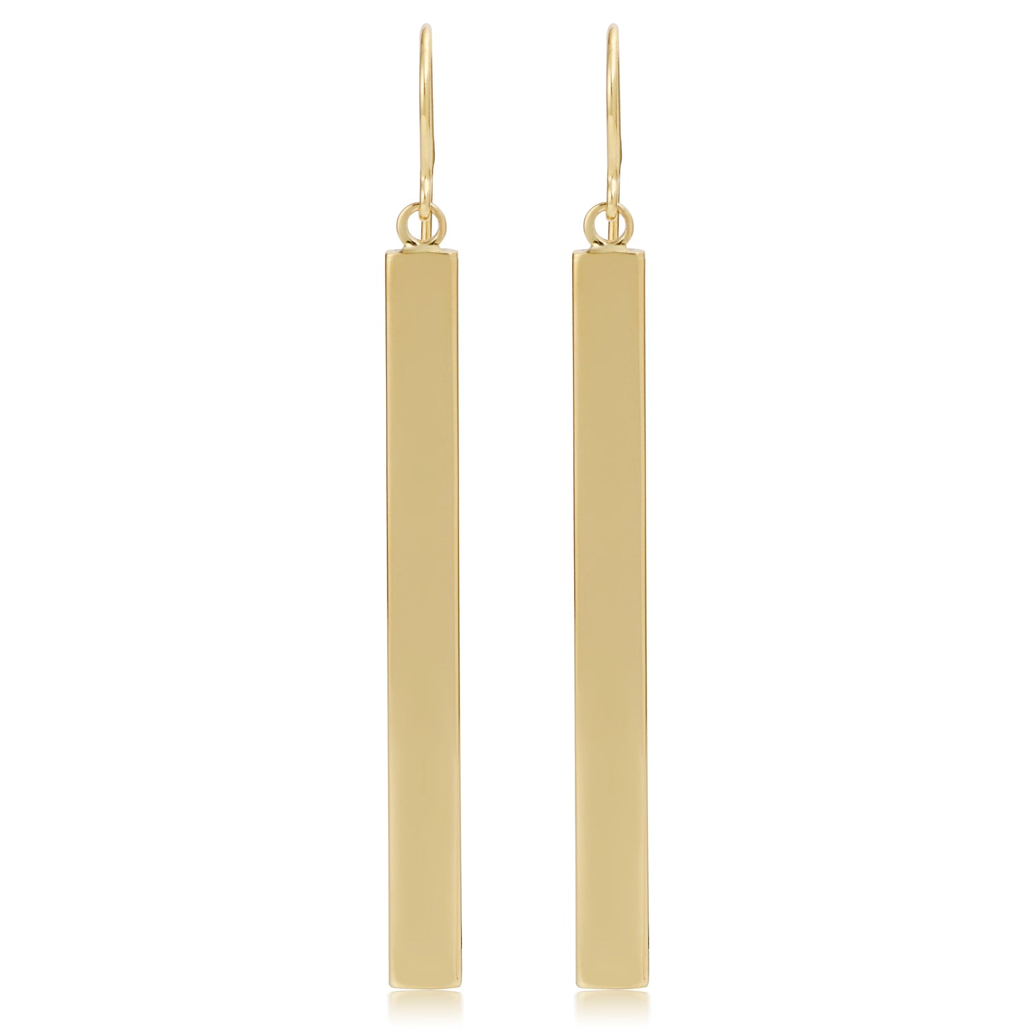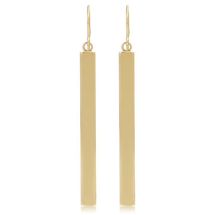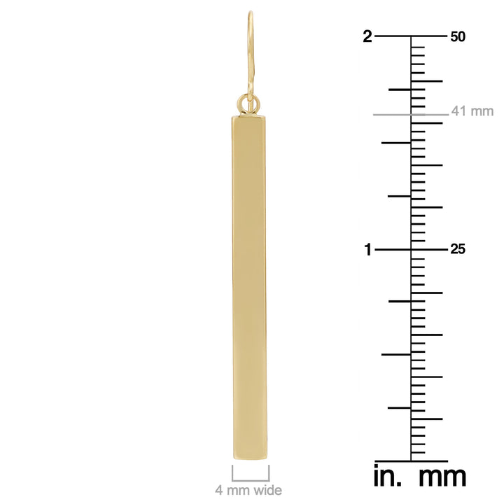 14k Yellow Gold High Polish Bar Drop Earrings (4 mm wide x 41 mm long)