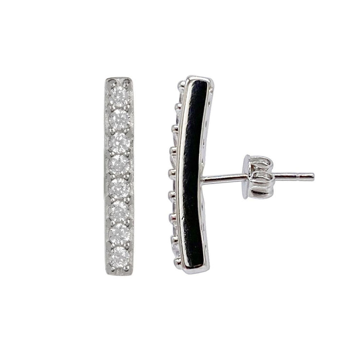 White rhodium plated brass. Swarovski crystal embellishment. Earrings size: 12mm x 2mm wide. Post earrings require pierced ears.
