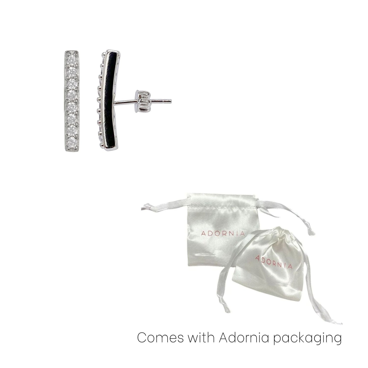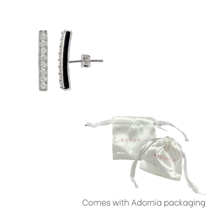 These Adornia Swarovski Crystal Bar Studs in Silver offer a minimalist design with a touch of sparkle. The 12mm x 2mm wide bars are adorned with Swarovski crystals, making these earrings a chic and subtle accessory for everyday wear.