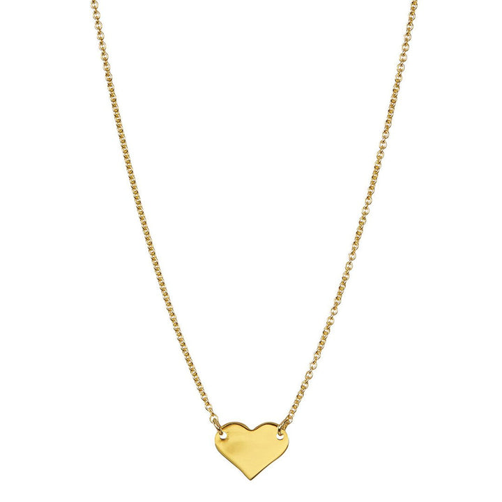 Handcrafted in 14k yellow gold-plated brass. Features 8mm x 10mm heart pendant. 16-18' adjustable chain with spring ring closure.