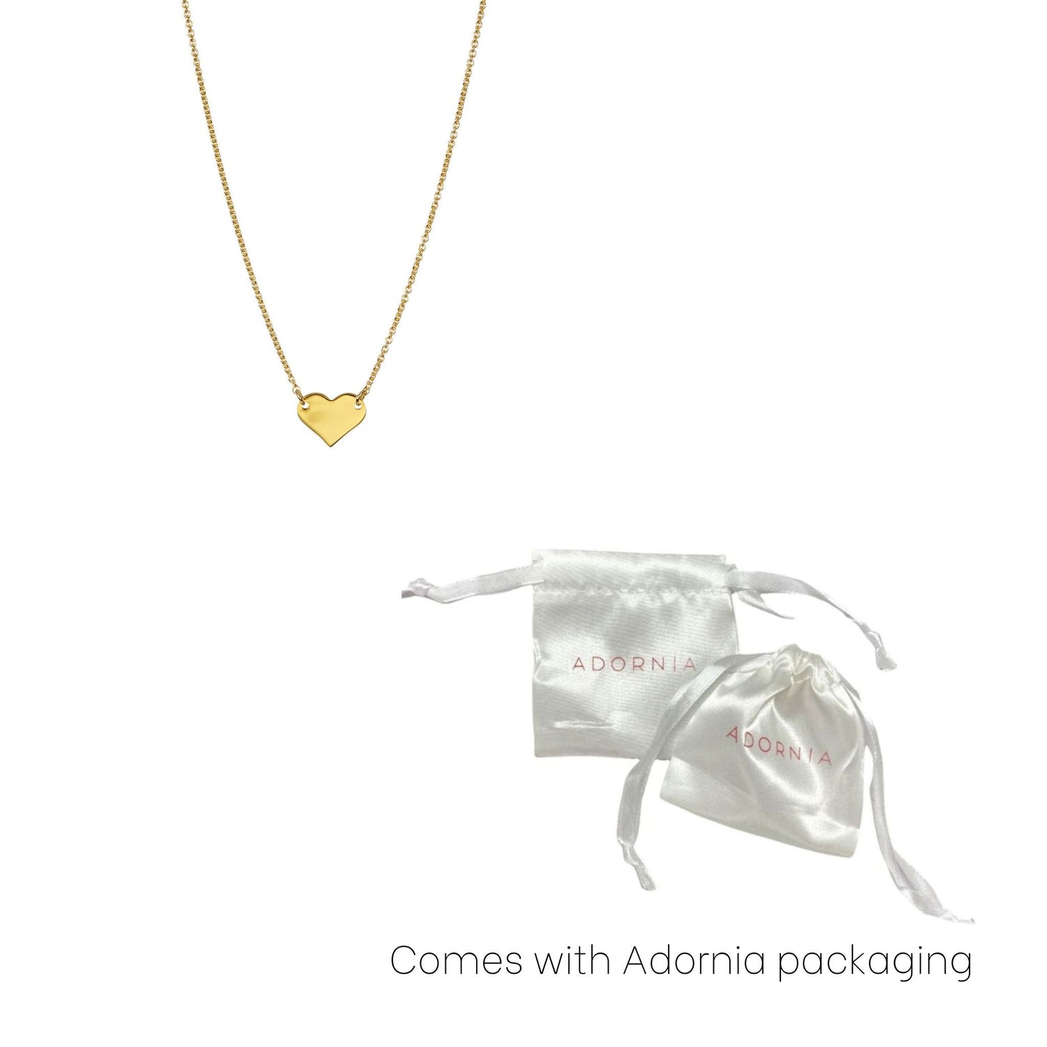 This Adornia Heart Pendant Necklace is a delicate and charming piece, featuring a tiny heart-shaped pendant. The 14k yellow gold plating adds warmth and elegance, while the adjustable 16-18' chain offers versatility. Whether worn alone or layered, this necklace symbolizes love and affection in a minimalist design.