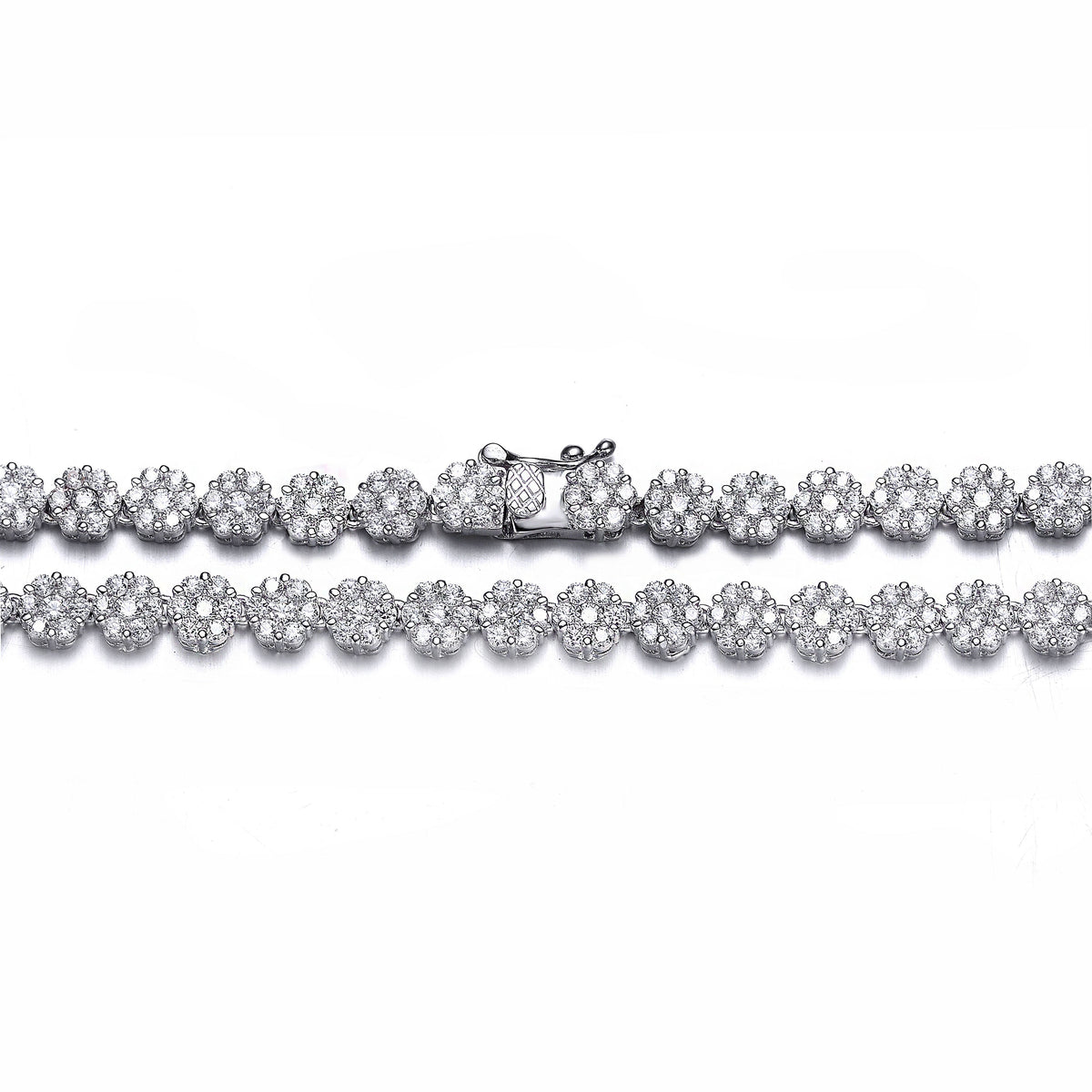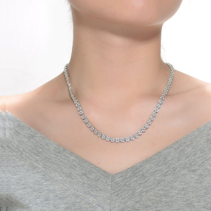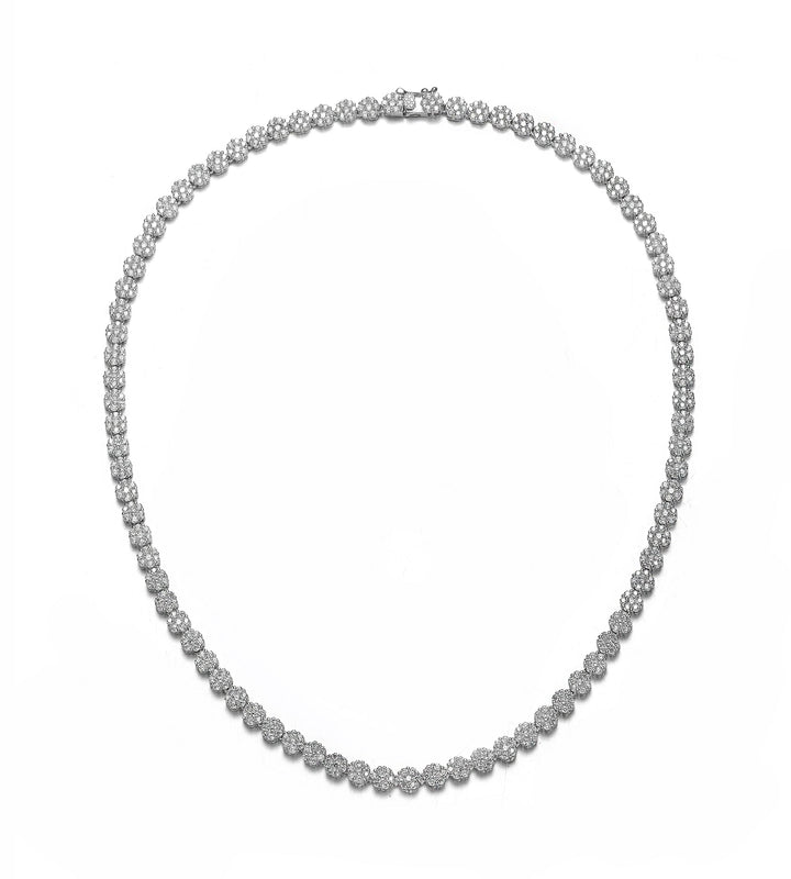 Sterling Silver Cubic Zirconia Flower Design Tennis Necklace