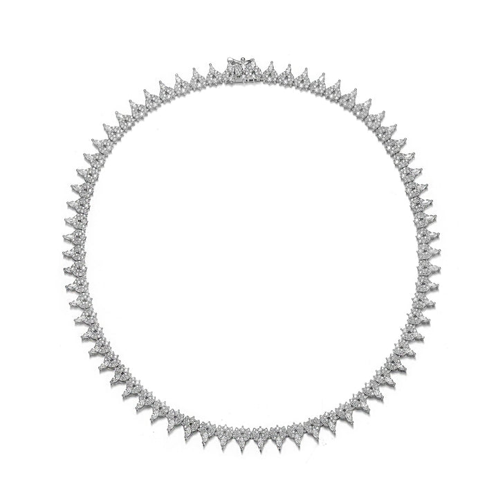 Sterling Silver Clear Cubic Zirconia Cluster Tennis Necklace