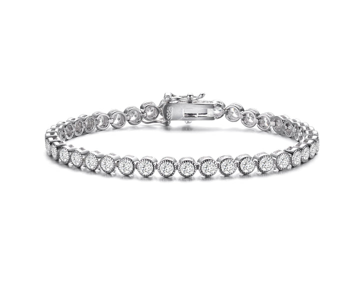 Sterling Silver Cubic Zirconia Milgrain Bezel Tennis Bracelet