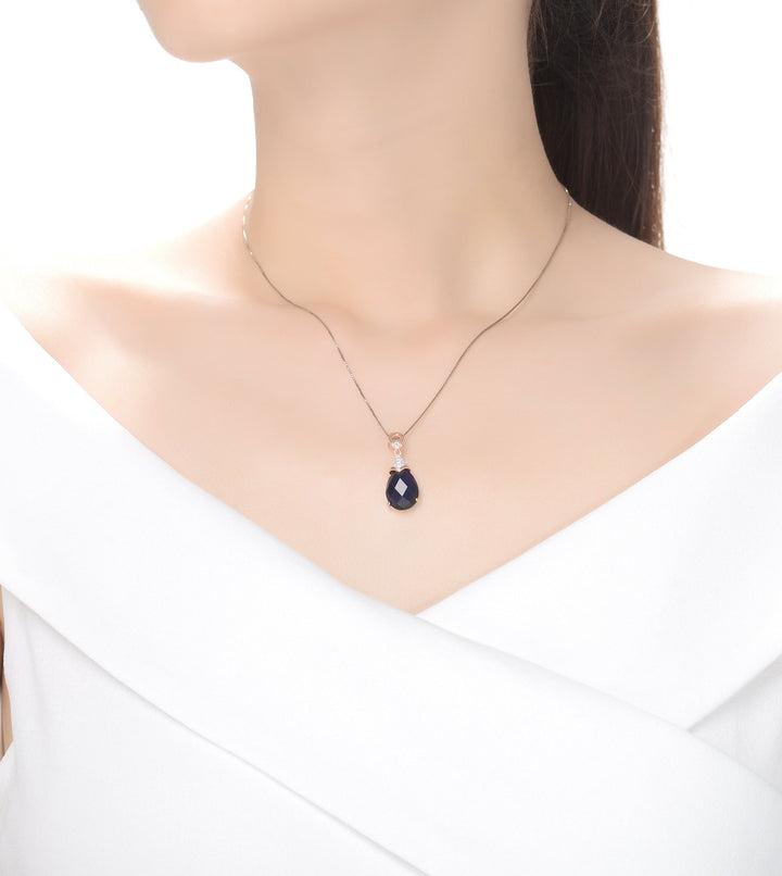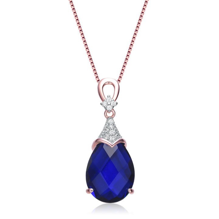 Sterling Silver Rose Gold Plated Cubic Zirconia Necklace by Genevive is a statement of modern elegance. Featuring a vivid blue cubic zirconia centerpiece, this asymmetrical pendant combines a peach-hued overlay of rose gold-plated sterling silver with an oval form, creating a dynamic contrast of color and texture. A striking accessory that effortlessly enhances any outfit.