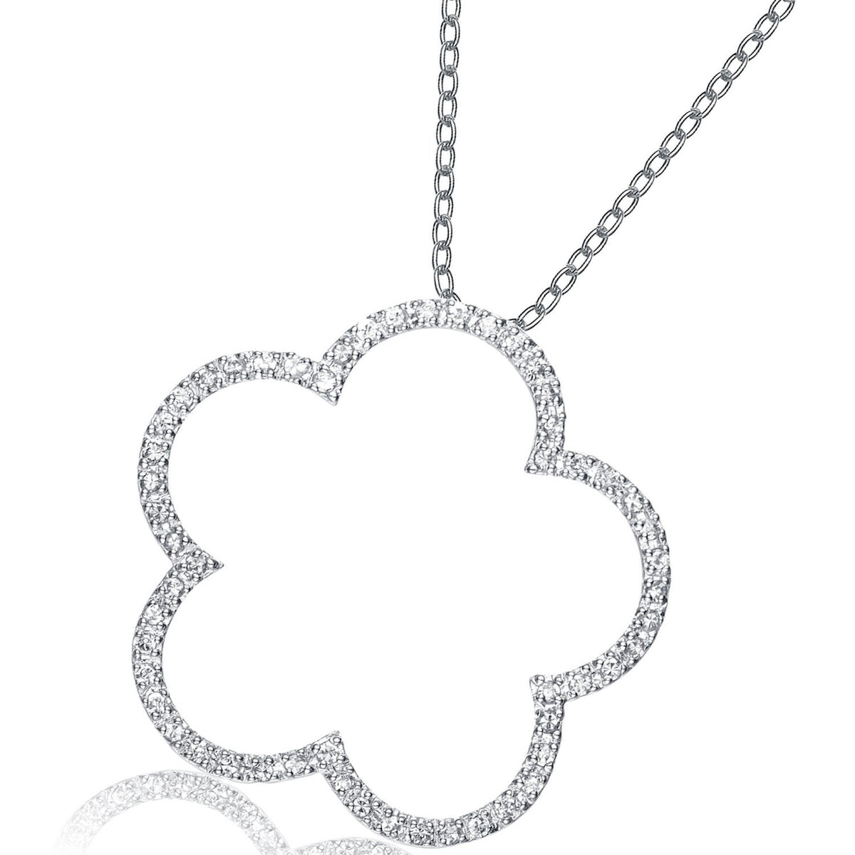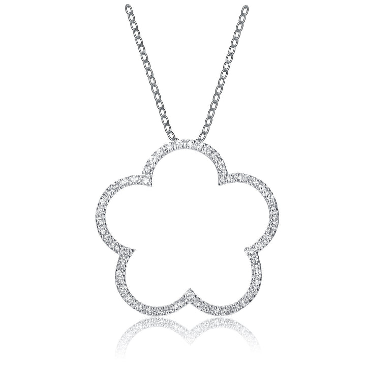 Sterling Silver Cubic Zirconia Flower Shape Necklace