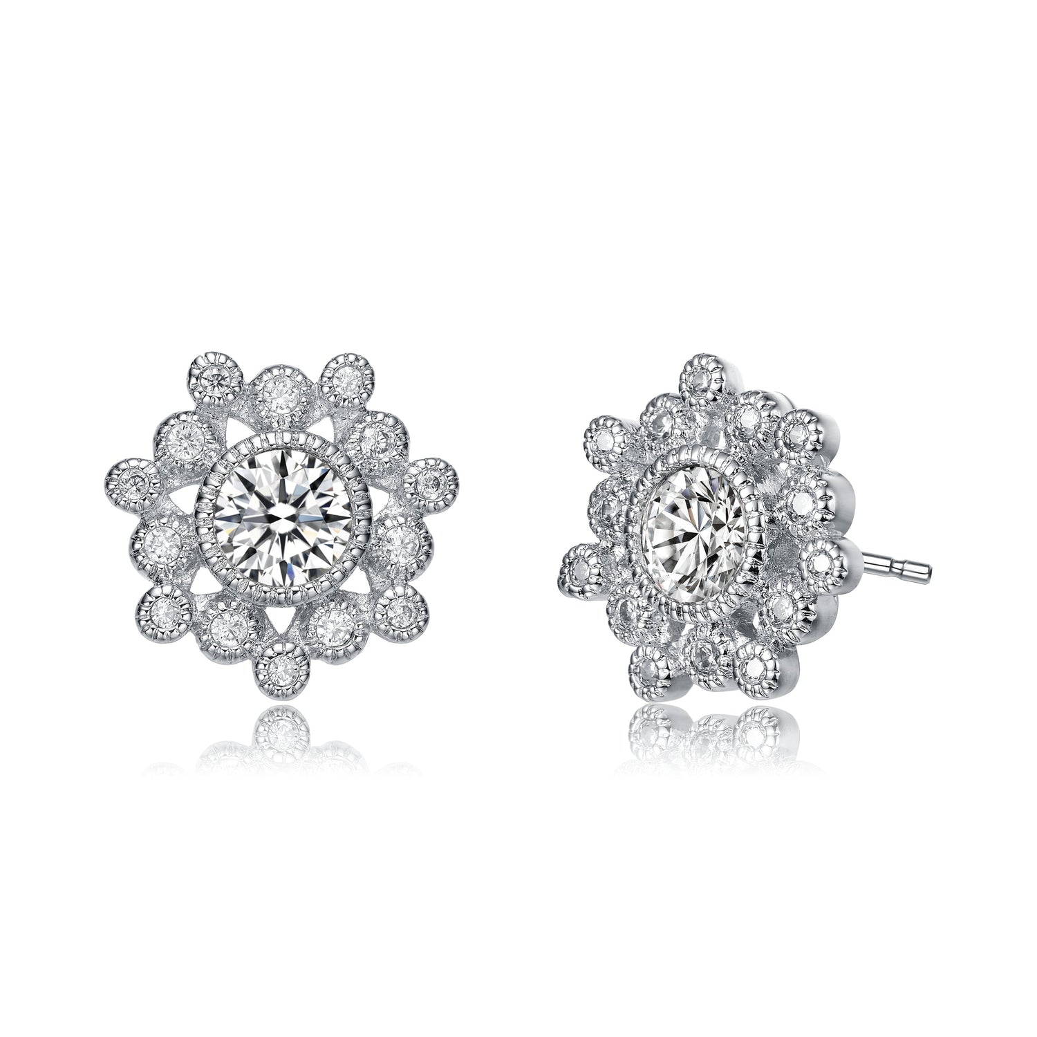 Sterling Silver Cubic Zirconia Flower Stud Earrings