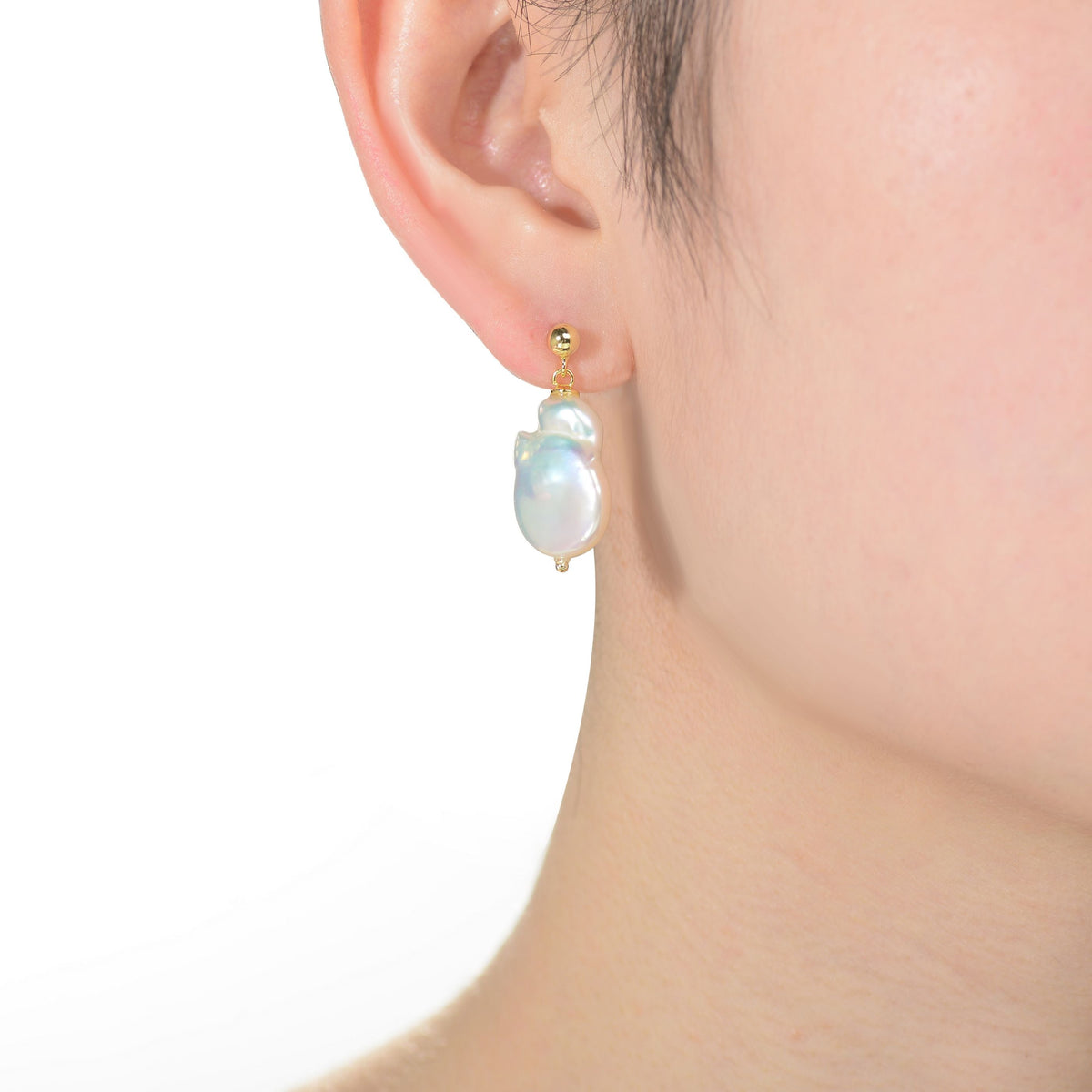Sterling Silver Gold Plating Freshwater Pearl Dangling Earrings