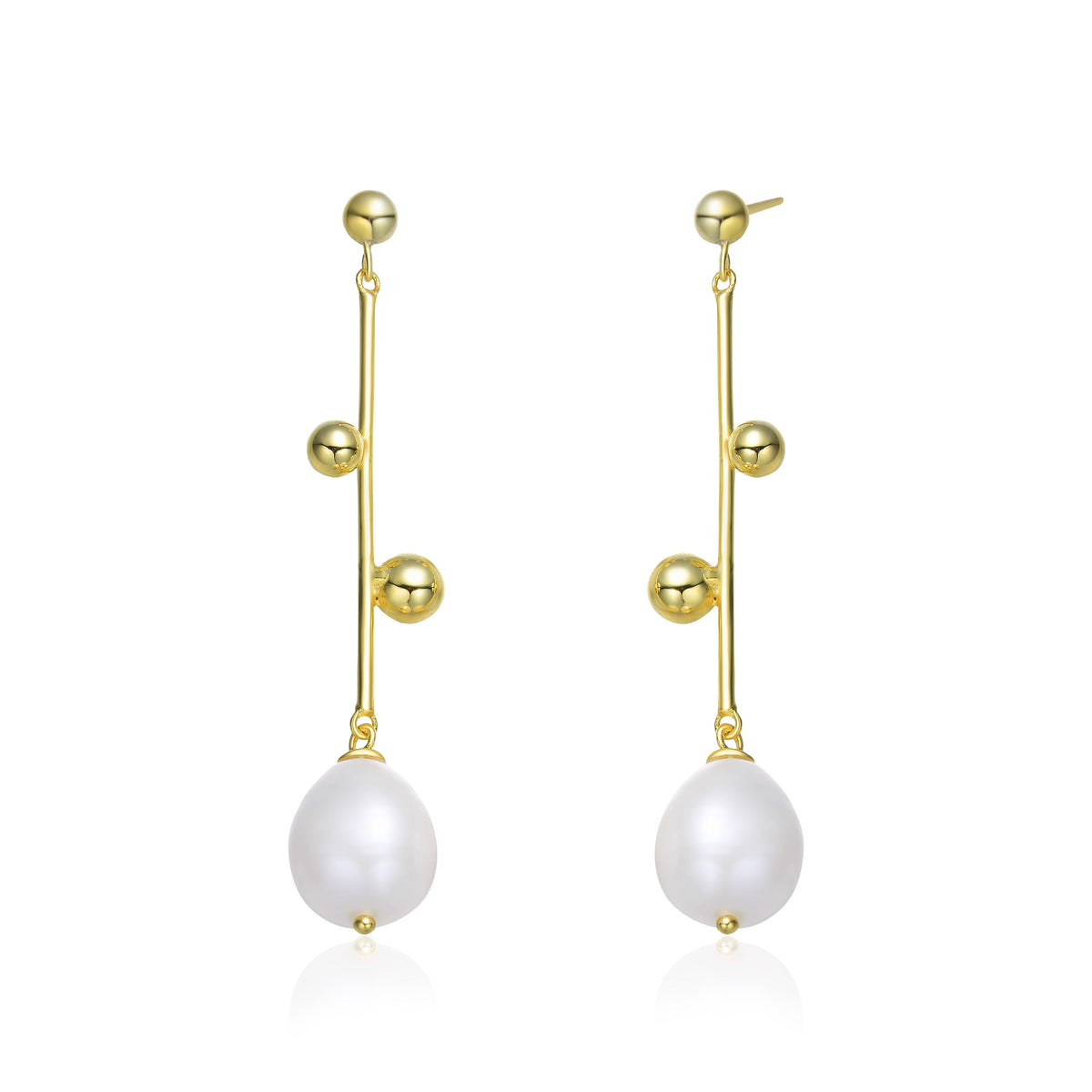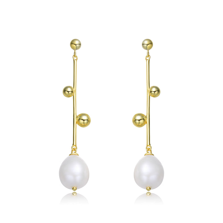 Sterling Silver Gold Plating Freshwater Pearl Dangling Earrings