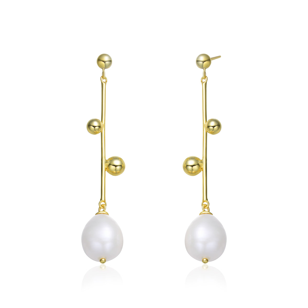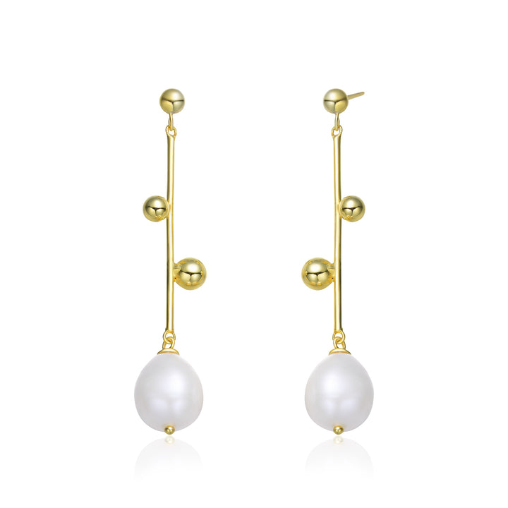 Sterling Silver Gold Plating Freshwater Pearl Dangling Earrings