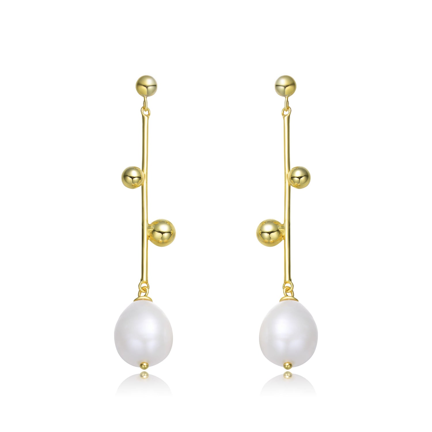 These Sterling Silver Gold Plated Freshwater Pearl Dangling Earrings by Genevive are a nature-inspired masterpiece. The gold-plated sterling silver forms a plant-like design, with the metal serving as the stem and freshwater pearls as delicate buds. A sophisticated and artistic piece, perfect for formal wear or as a special gift.