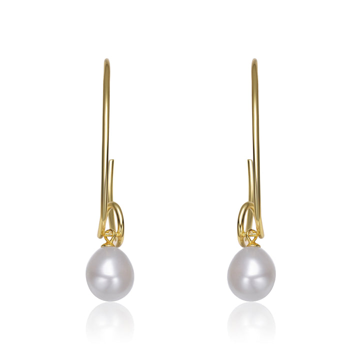 These Sterling Silver Gold Plated Freshwater Round Pearl Hoop Earrings by Genevive are a contemporary take on a classic hoop design. The open hoop silhouette is enhanced by a delicate freshwater pearl drop, adding movement and elegance. A versatile accessory that effortlessly complements any outfit, making it an excellent gift choice.