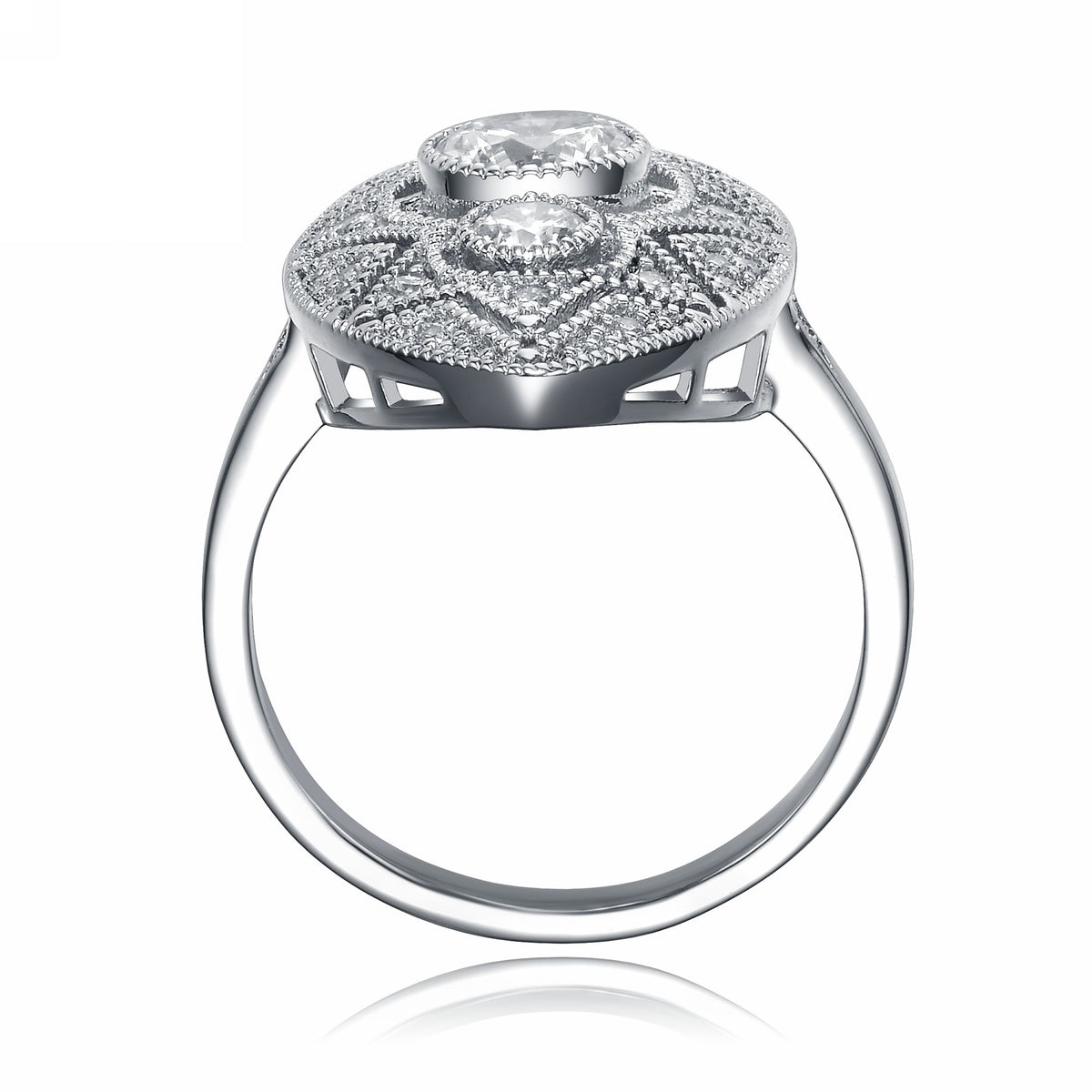 Sterling Silver Clear Round Cubic Zirconia Filigree Ring