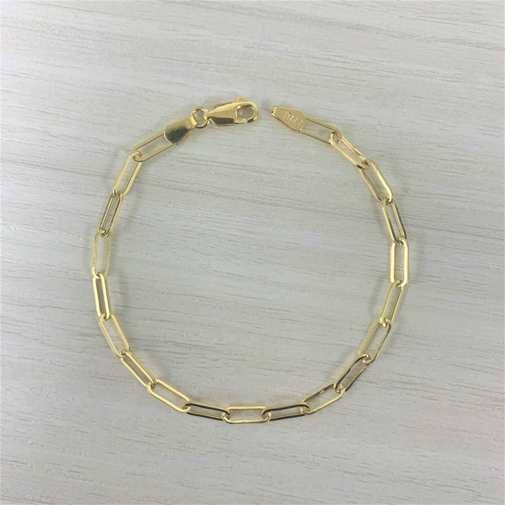 This 14k Gold Paperclip Link Bracelet by Sabrina Designs is a contemporary take on a timeless chain design. Featuring sleek, elongated links, this bracelet exudes modern elegance and versatility. Crafted in Italy with expert precision, its lightweight yet durable construction makes it perfect for layering or wearing solo. Whether styled for everyday wear or a special occasion, this piece adds a sophisticated touch to any jewelry collection.