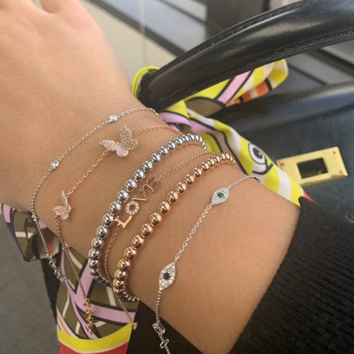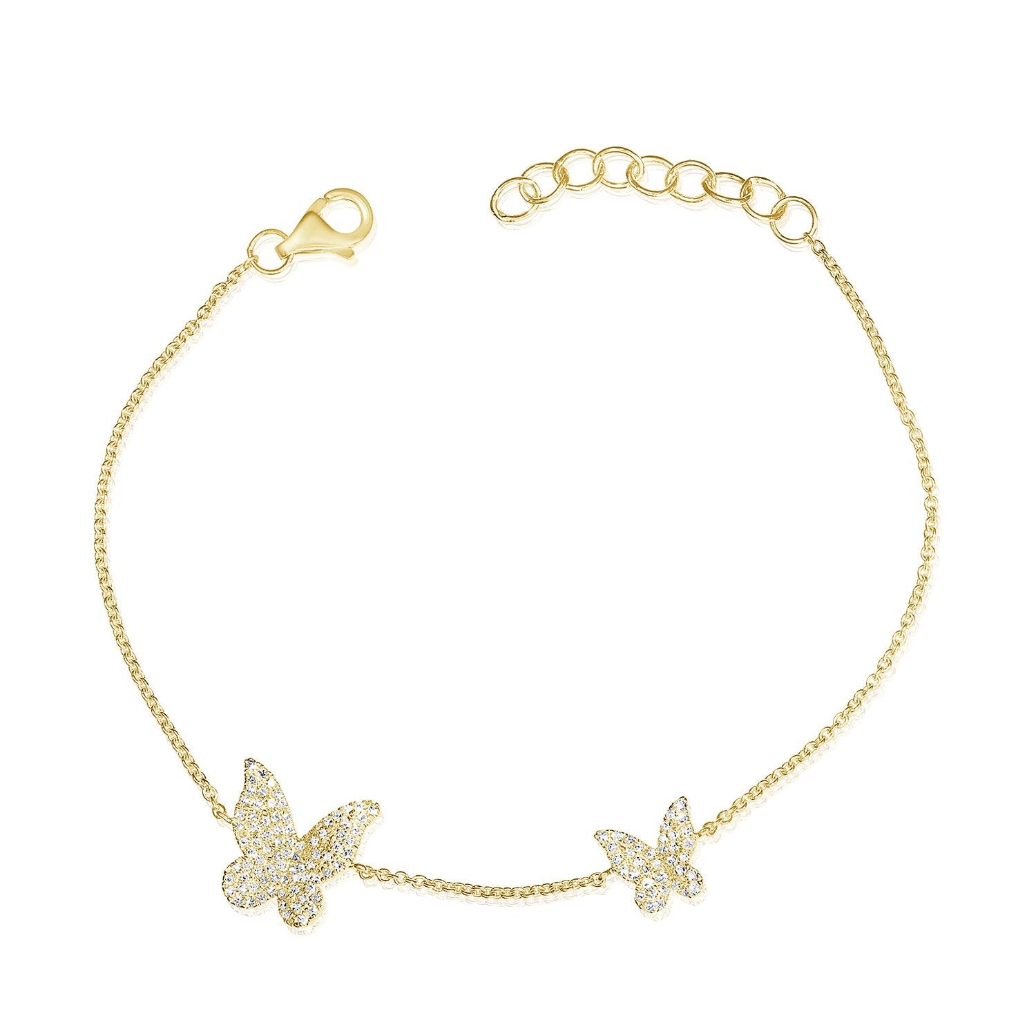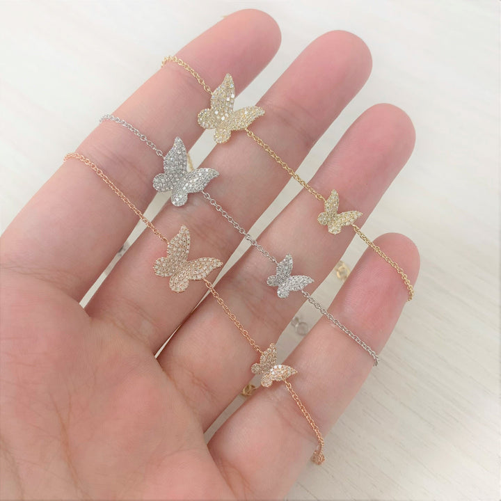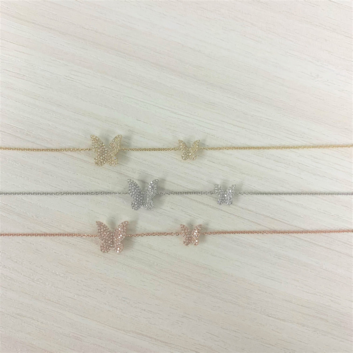 This 14k Gold & Diamond Butterfly Bracelet by Sabrina Designs is a captivating piece that celebrates transformation and elegance. Adorned with a duo of shimmering butterfly motifs encrusted with diamonds, this bracelet symbolizes grace and renewal. The adjustable fit ensures comfort while maintaining an elevated sense of luxury.