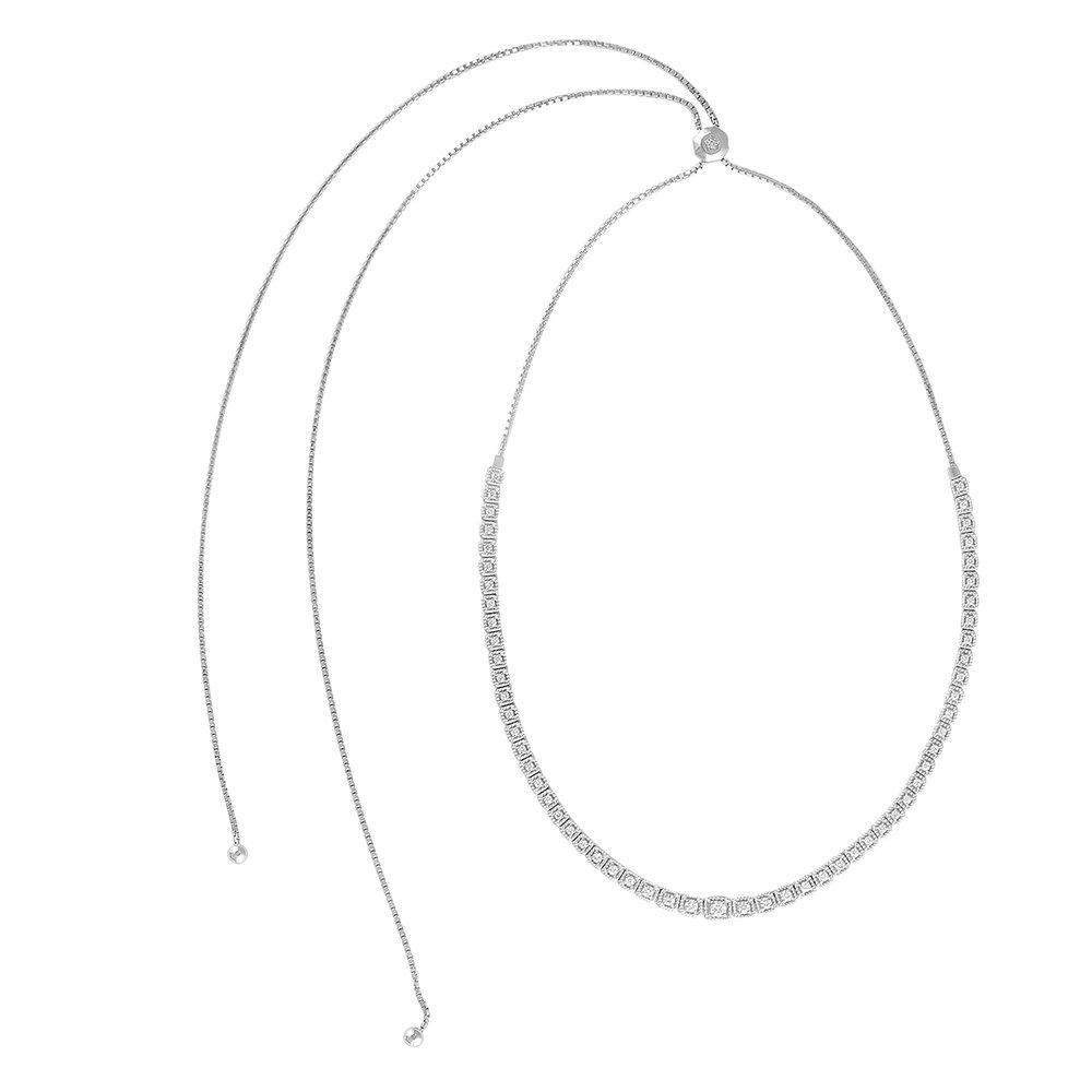 Crafted in 14k gold. Features natural round-cut diamonds totaling 1.00 ct. t.w., G-H color, SI1 clarity. Adjustable bolo chain. Chain length: 16".