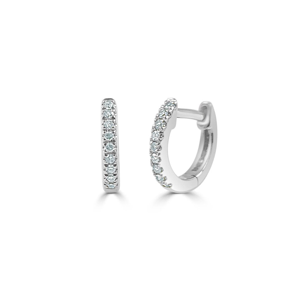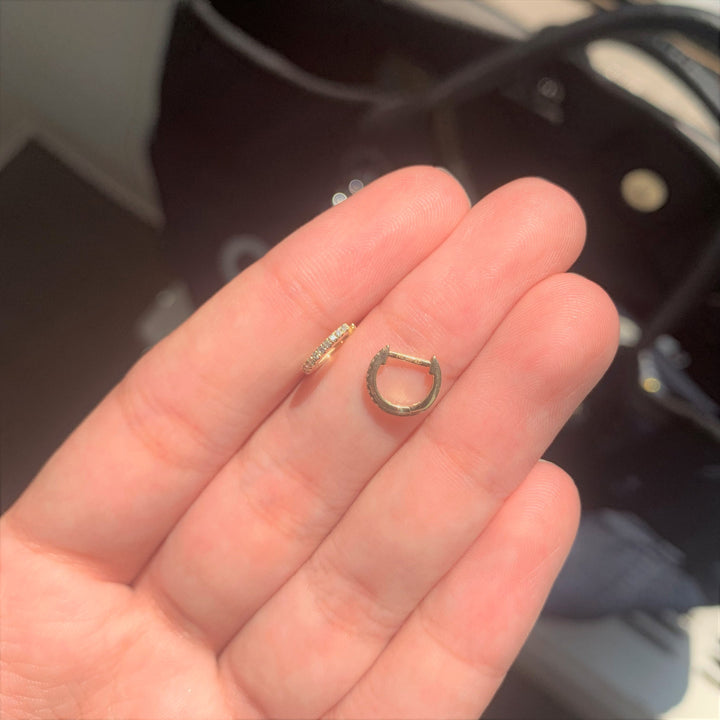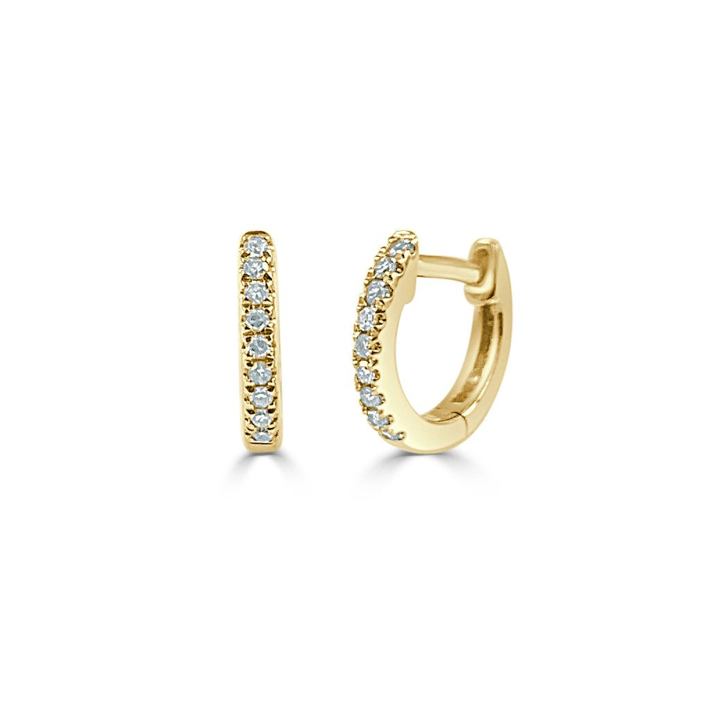 These 14k Gold & Diamond Huggie Earrings by Sabrina Designs offer understated luxury in a petite design. Featuring a row of pavé-set diamonds, these small huggies are perfect for second piercings or cartilage wear, adding a subtle yet sophisticated sparkle.