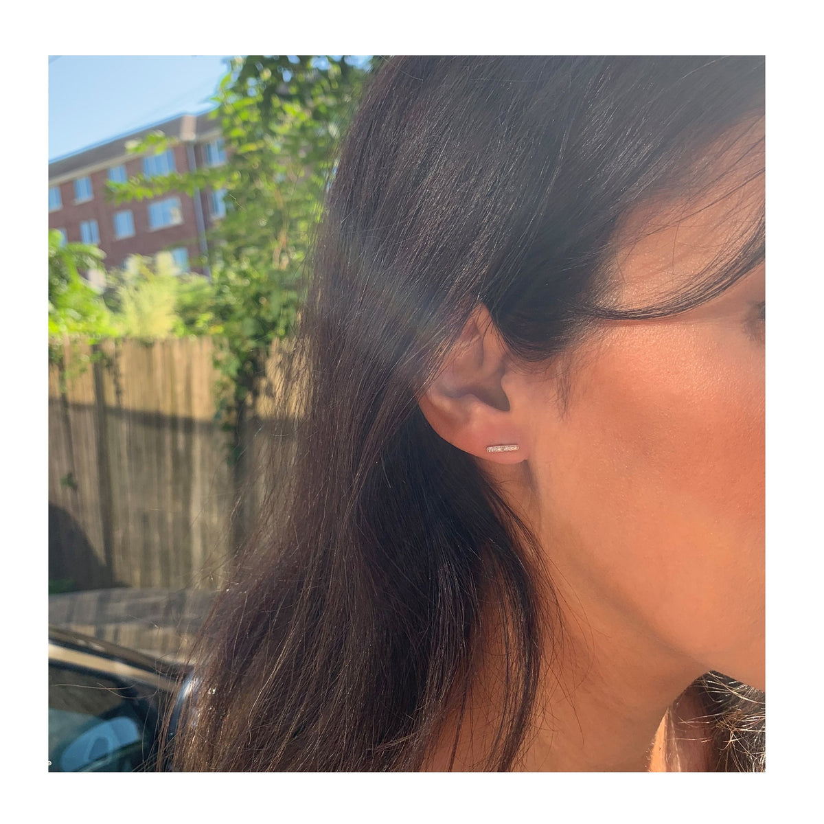 These 14k Gold & Diamond Bar Stud Earrings by Sabrina Designs offer a sleek and minimalist look, perfect for everyday elegance. The slim gold bar is accented with delicate diamonds, adding a subtle shimmer that makes them a refined yet modern choice. Whether worn alone or paired with other earrings, these studs are effortlessly chic.