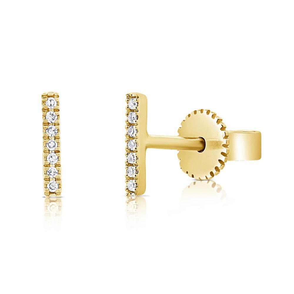 Handcrafted in 14k gold. Set with approximately 0.03 ct. of natural white diamonds. Measurements: Length 0.39', Width 0.07'. Secured with butterfly push-back closures.