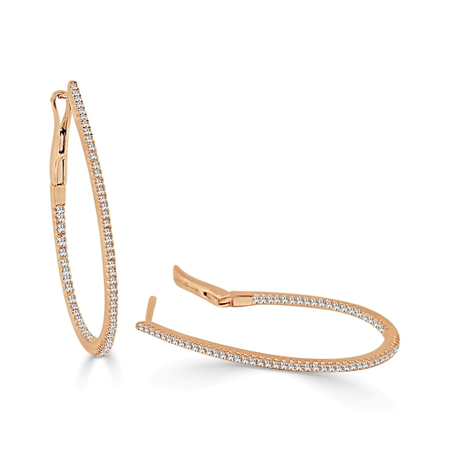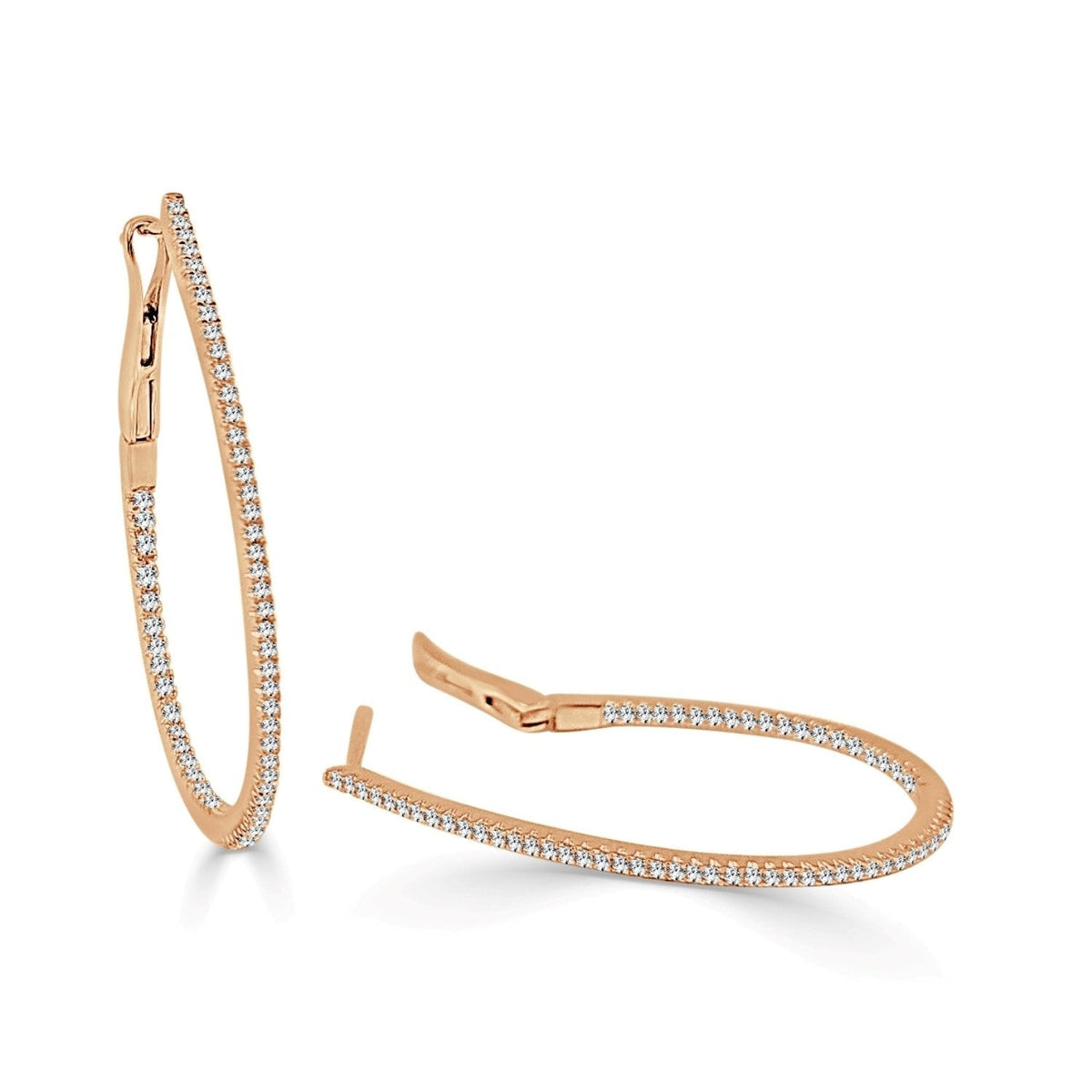 14k Gold & Diamond Skinny Hoop Earrings 1.25'