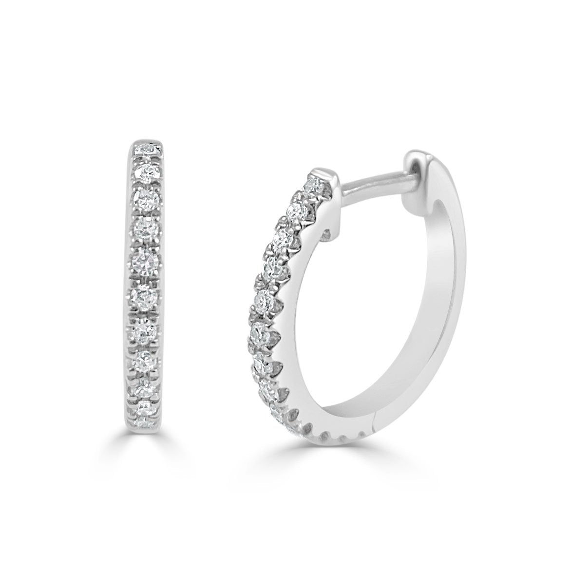 Handcrafted in 14k gold. Set with approximately 0.09 ct. of natural round white diamonds. Diamond color: GH. Diamond clarity: SI1. Diameter: 0.5'.