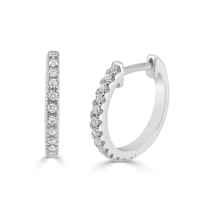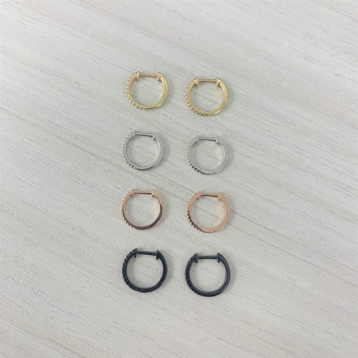 These 14k Gold & Diamond Huggie Earrings by Sabrina Designs are a timeless essential for effortless elegance. Featuring a row of sparkling diamonds set along the delicate U-shaped hoop, they offer a refined touch of luxury. Their petite size and versatile design make them perfect for everyday wear, whether worn alone or stacked with other earrings.