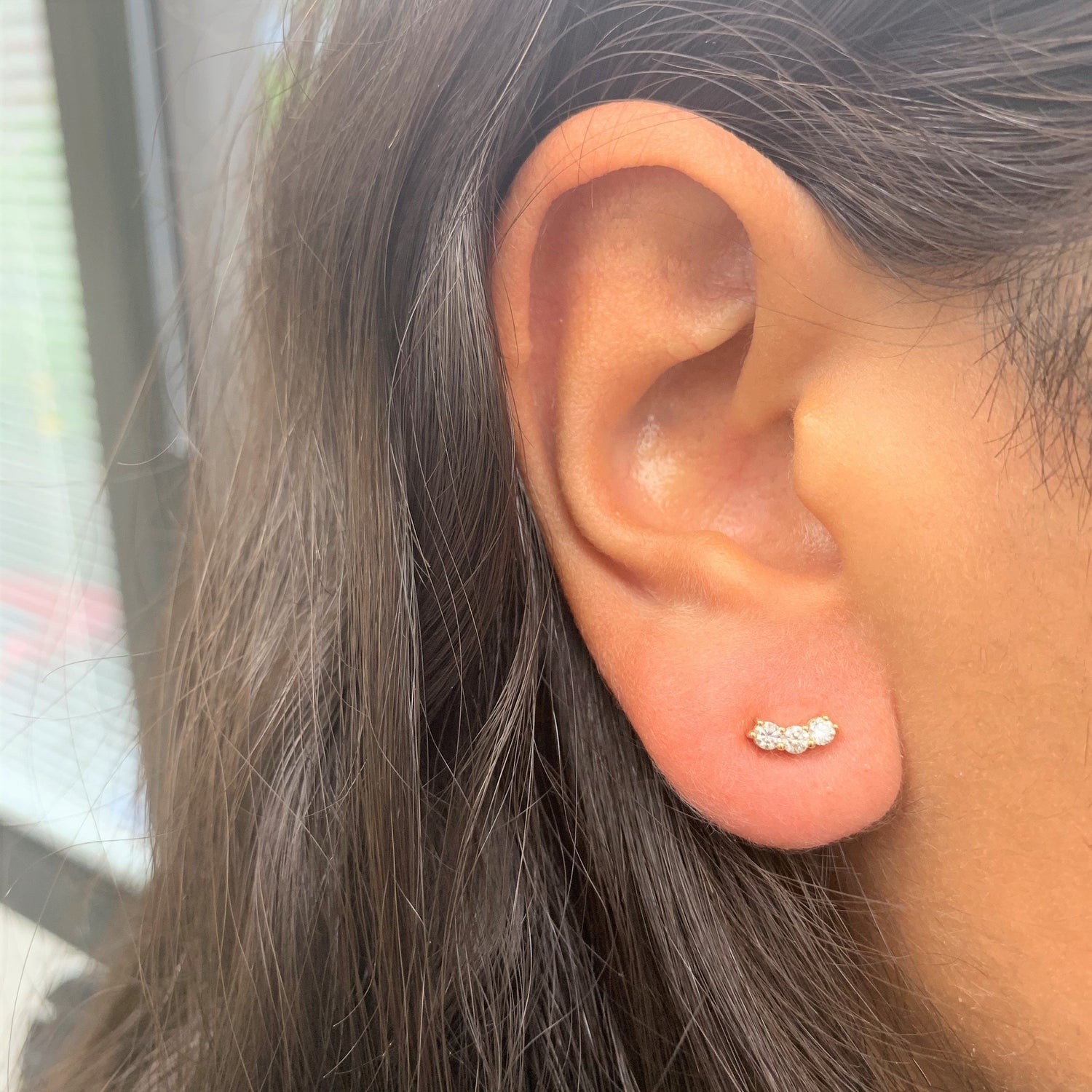 These 14k Gold & Diamond 3-Stone Stud Earrings by Sabrina Designs offer a modern take on a timeless classic. Three dazzling diamonds in a linear setting create an effortlessly sophisticated look, making these studs ideal for both minimalists and those looking to build an elegant ear stack.