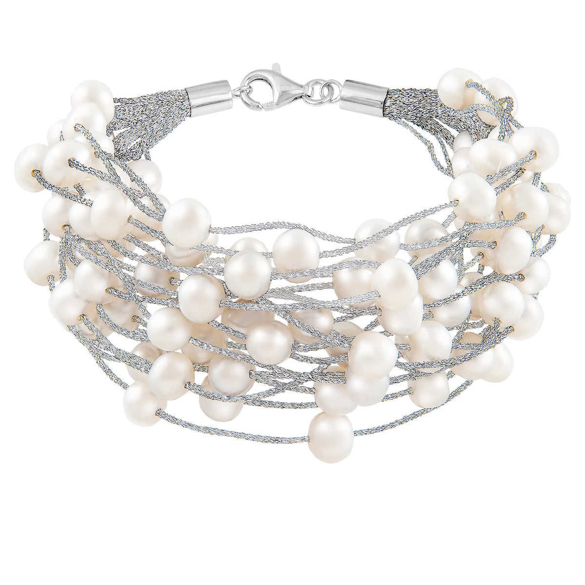 This 6-7mm Freshwater Pearl Multirow Bracelet by Splendid Pearls is a graceful and feminine statement piece. Featuring multiple strands of soft pink freshwater pearls, this bracelet offers a layered elegance that complements any look. The sterling silver rhodium-plated finish adds a modern touch, while the lobster clasp ensures a secure fit.