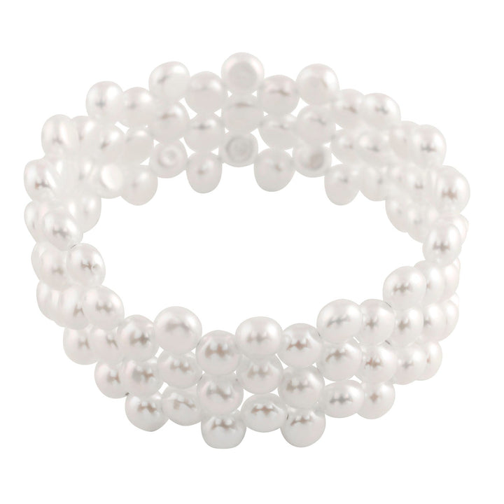 Features three rows of 7-8mm white freshwater pearls. Designed with an adjustable 7.25-inch flexible coil construction for a comfortable, adaptable fit.